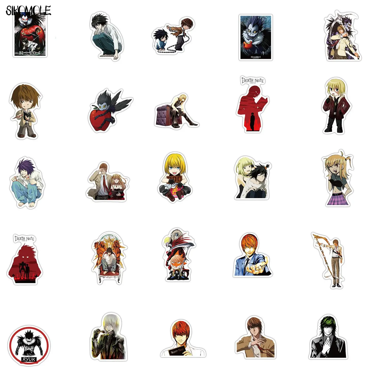 10/30/50 шт в наборе, короткая футболка с героями из японского аниме «тетрадь смерти из мультфильма Стикеры s музыкальная шкатулка для плюшевых игрушек ноутбук Чемодан чемодан для скейтборда наклейки граффити Стикеры