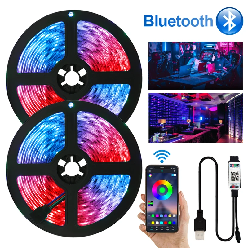 Светодиодная гибкая лента SMD2835 RGB, светодиодная полоса с диодами и Bluetooth, освещение с дистанционным управлением постоянным током, 3 клавиши, подсветка для телевизора, декоративная LED лампа, 5 В
