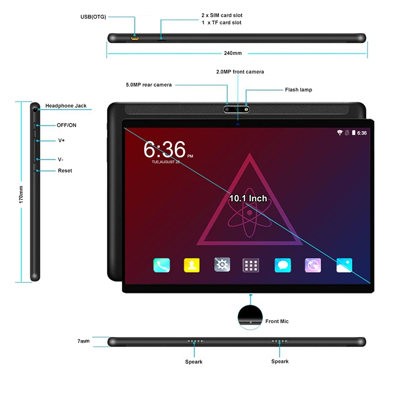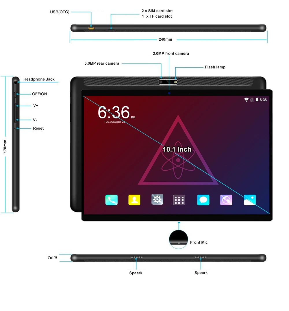 Планшет с 5,5-дюймовым дисплеем, Android 10,1, ОЗУ 4 Гб ПЗУ 32 ГБ, 7,0 Х800, IPS, двойная карта, Wi-Fi, четырехъядерный планшет, 10 дюймов, MT6580
