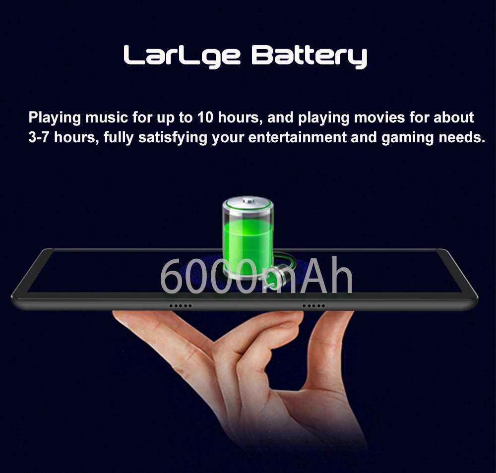 Воспроизведение музыки до 10 часов, воспроизведение фильмов около 3-7 часов, полностью удовлетворит ваши потребности в развлечениях и играх.