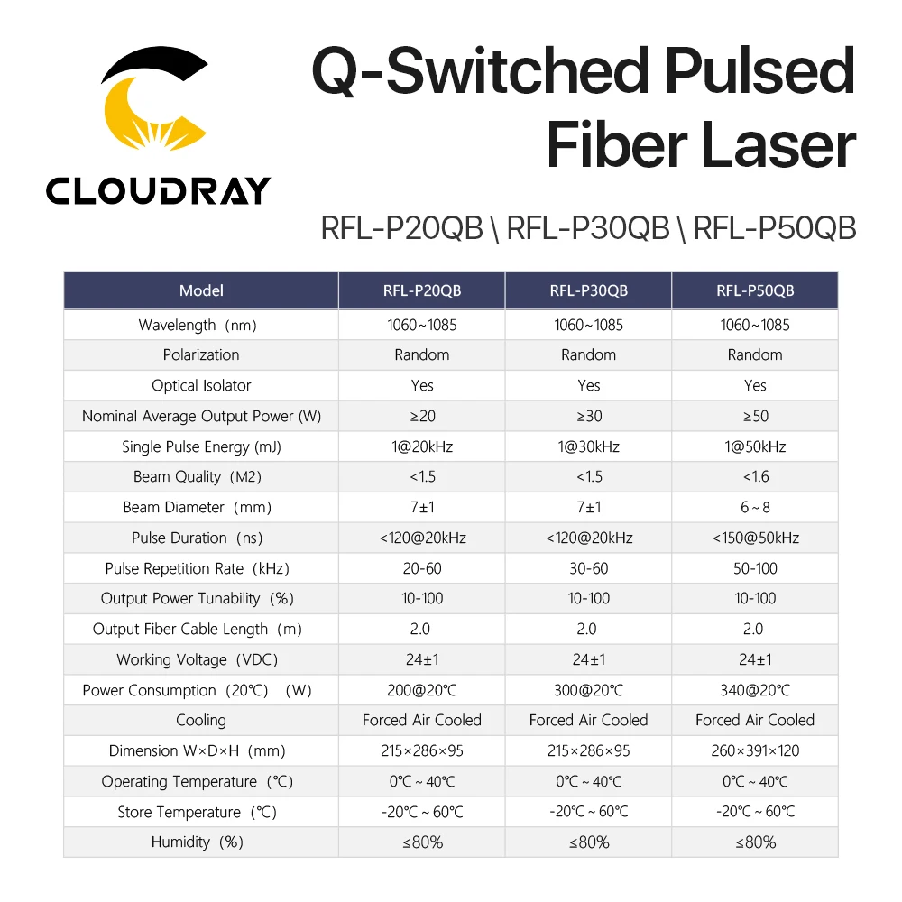Cloudray оригинальный Raycus 20 Вт 30 Вт 50 Вт 1064 нм импульсный оптоволоконный лазерный источник со встроенным красным светом для волоконного лазера Raycus