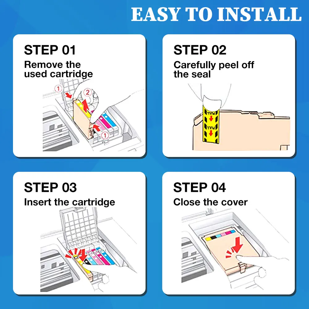 Для принтера Epson Expression Home XP-2100 / XP-2105Для принтера Epson Expression Home XP-3100 / XP-3105Для принтера Epson Expression Home XP-4100 / XP-4105Для принтера Epson WorkForce WF-2810 WF-2830 WF-2835 WF-2850Тип чернил: красительЦвет: BK/C/Y/MОбъем: BK-14ml C/Y/M-13.5mlОбласть: для Европы (exc.Russia) принтерТип чипа: однократный чип