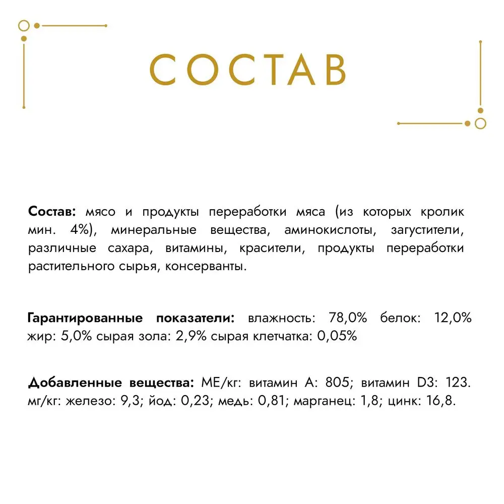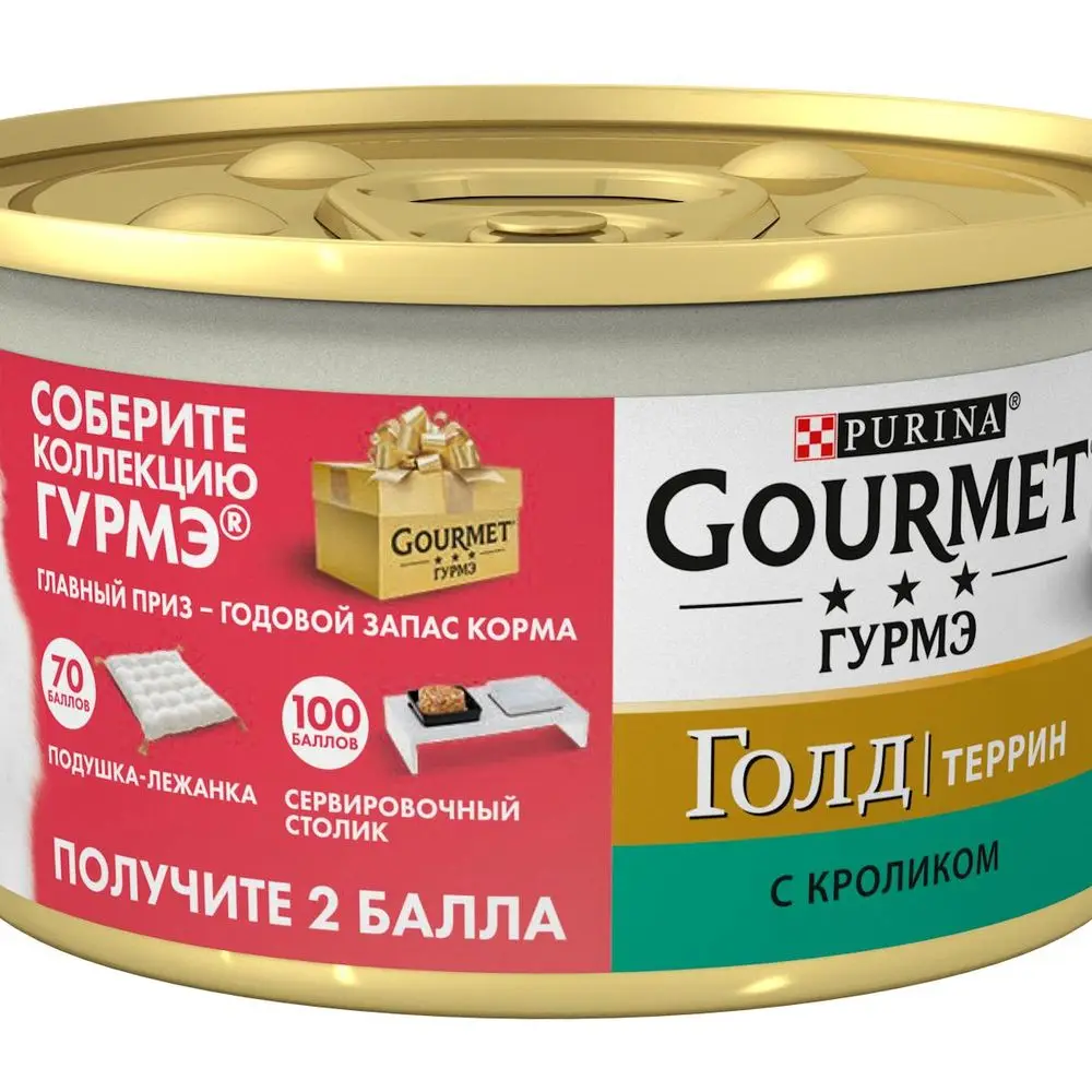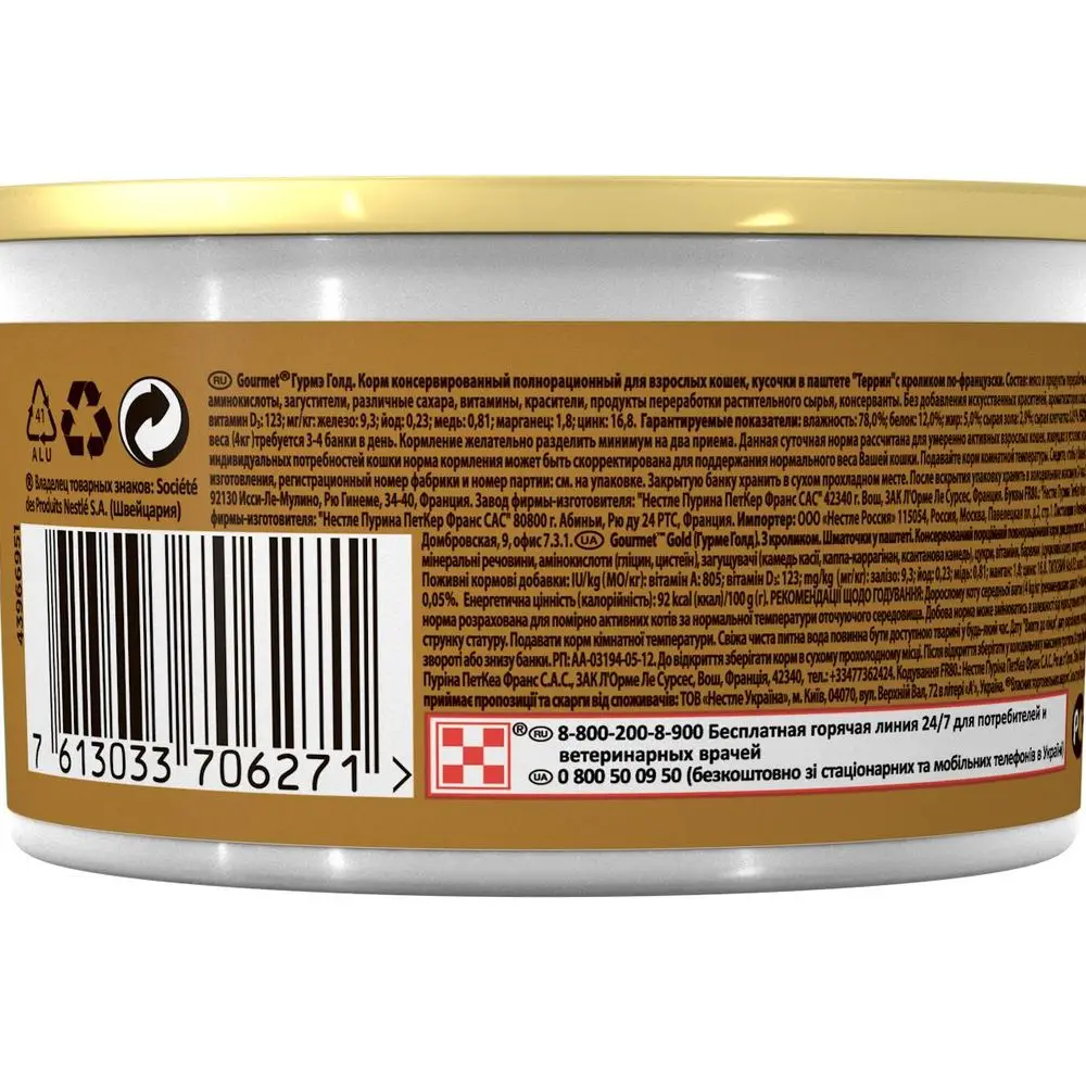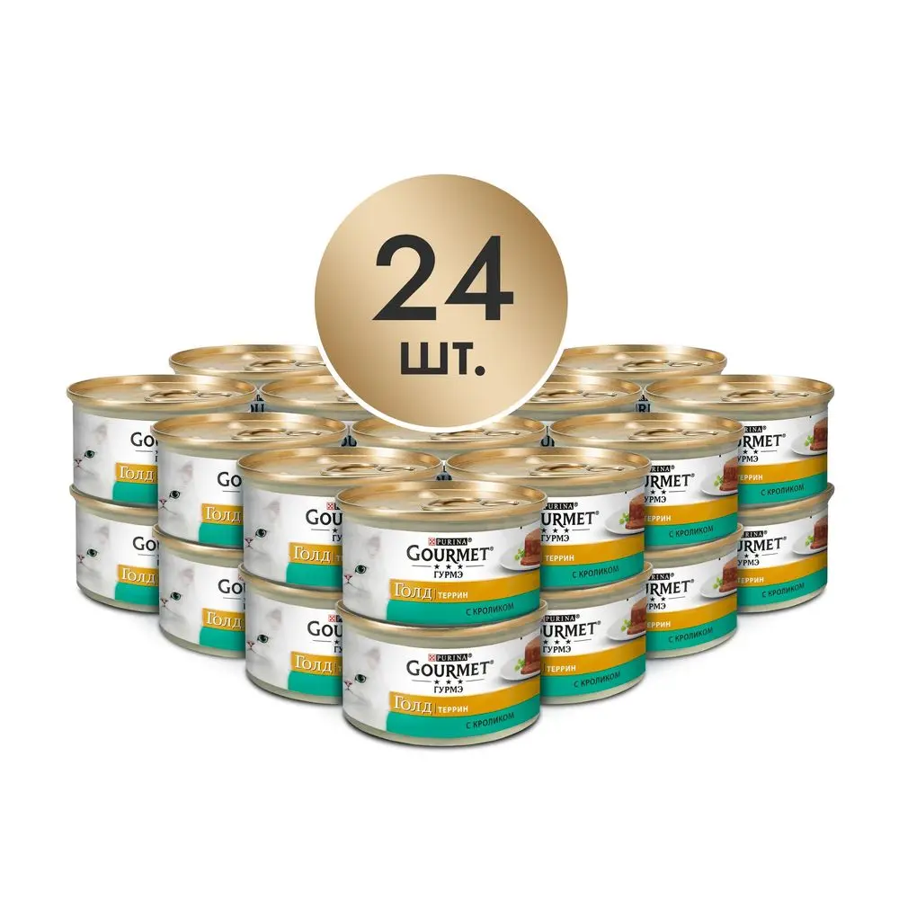 Влажный корм Gourmet Голд Террин (кусочки в паштете) для кошек, с кроликом по-французски, Банка, 85 г, 24 штуки