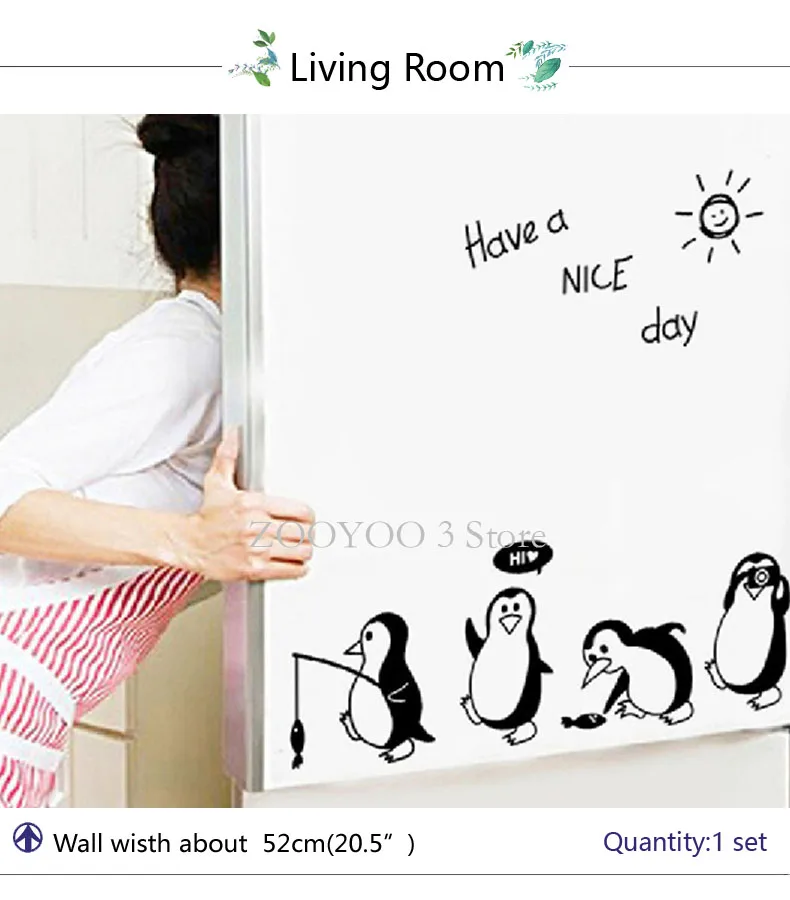 Мультфильм наклейки на стену для детских комнат и желаем вам хорошего дня! Наклейки с пингвинами на стену на холодильник домашний Декор наклейки на стену