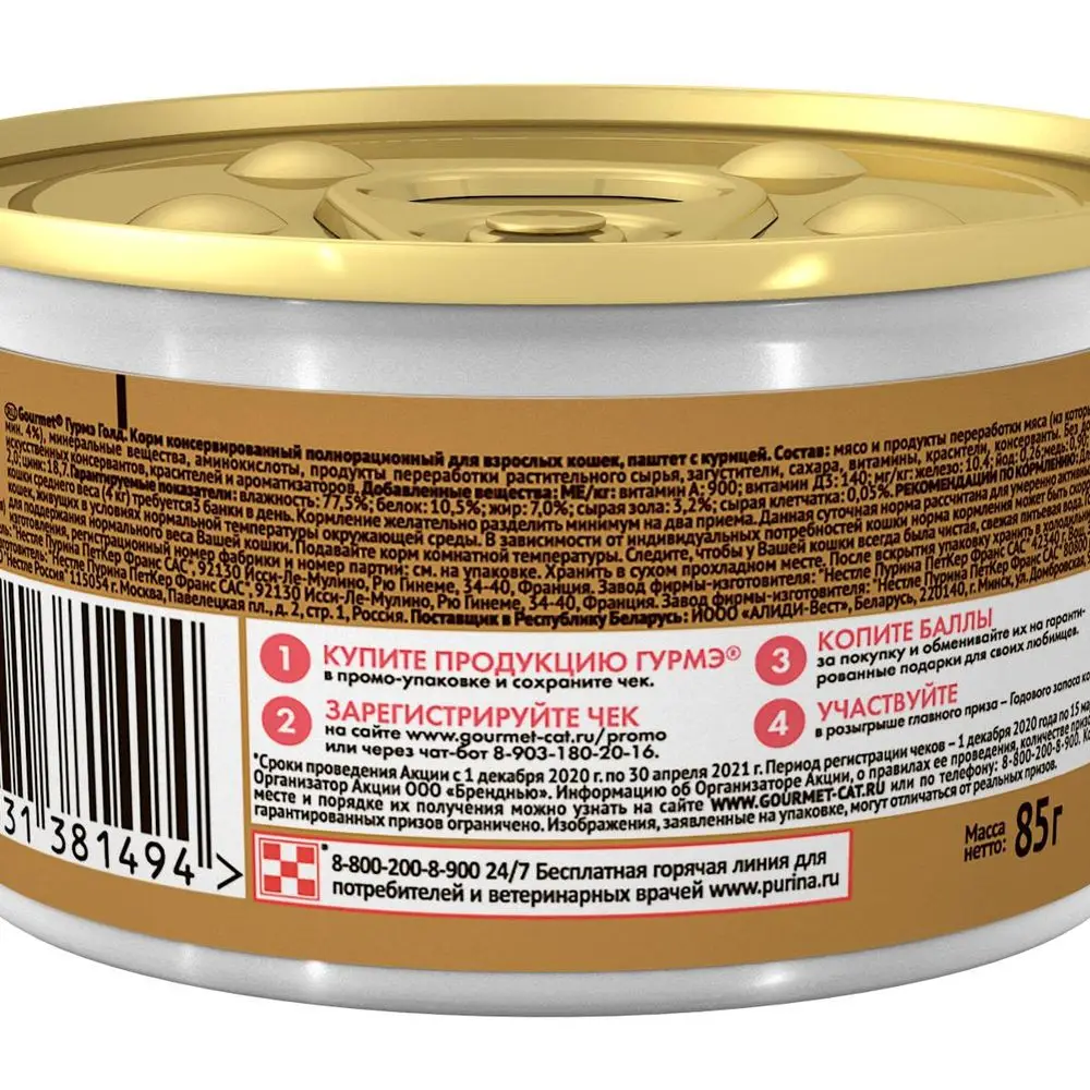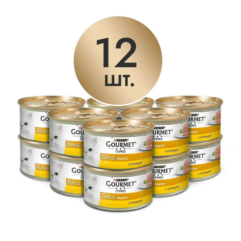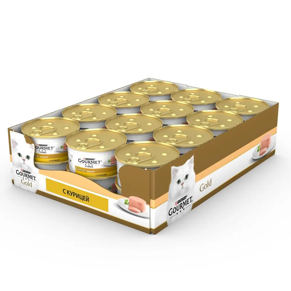 Влажный корм Gourmet Голд Паштет для кошек, с курицей, Банка, 85 г, 12 штук