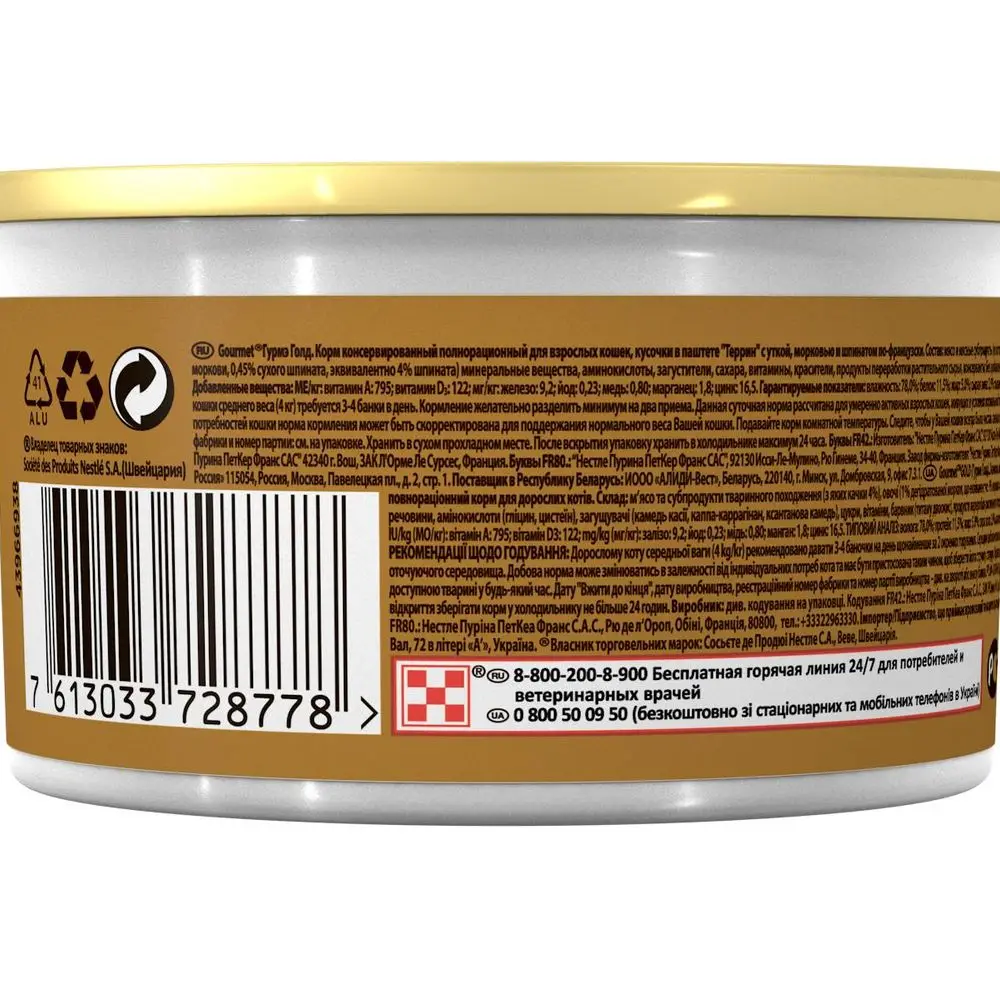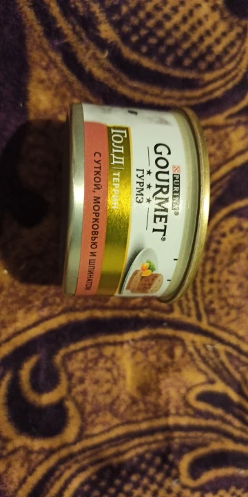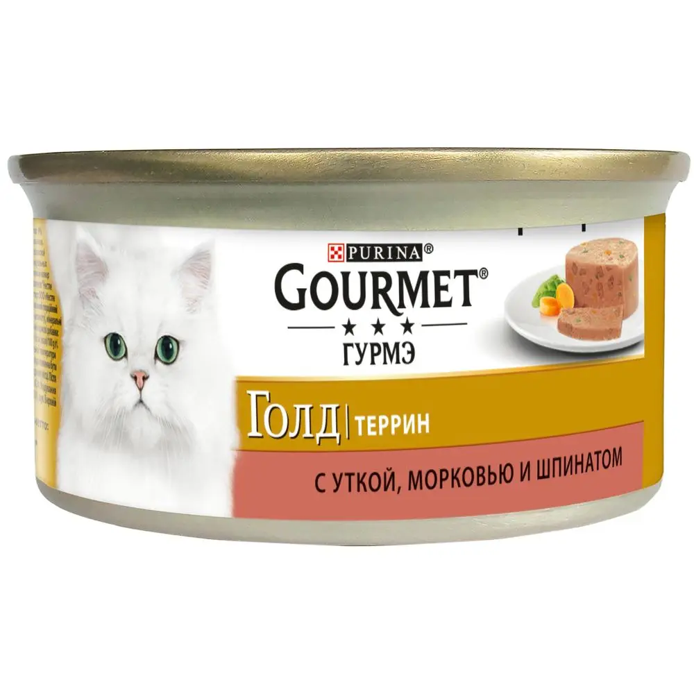 Влажный корм Gourmet Голд Террин (кусочки в паштете) для кошек, с уткой, морковью и шпинатом по-французски, Банка, 85 г