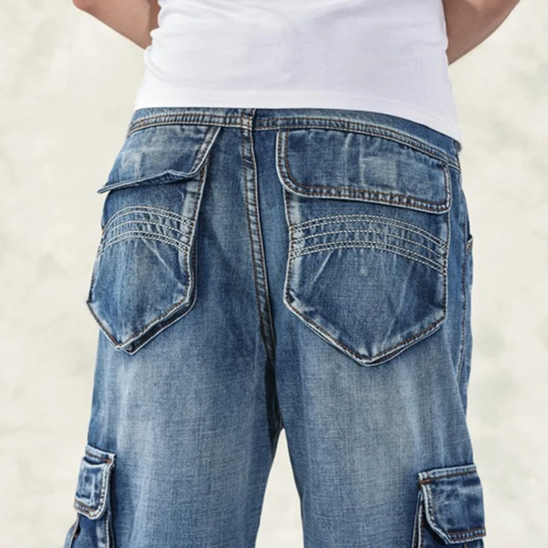 Джинсы мужские свободные со множеством карманов, мешковатые джинсы ...