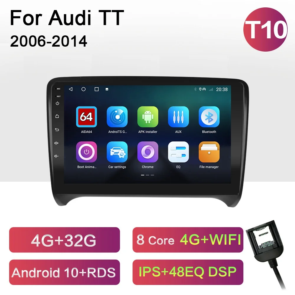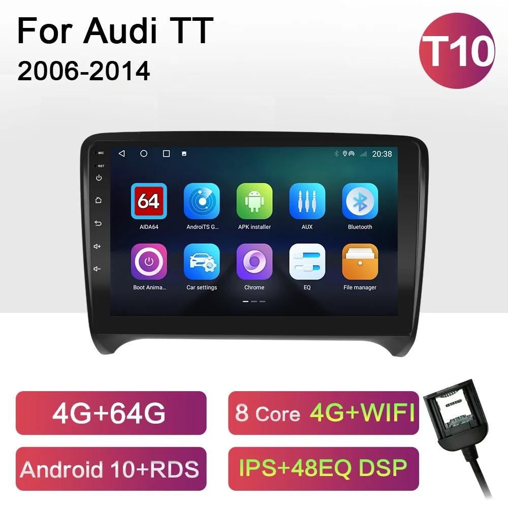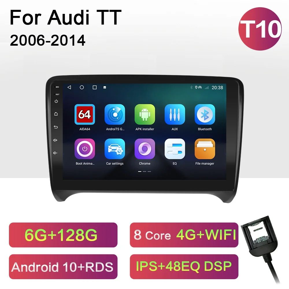 Автомагнитола 2DIN на Android 10,0 с GPS-навигацией, Wi-Fi, мультимедийный плеер для Audi TT MK2 8J 2006 2007-2014 DSP RDS IPS без DVD