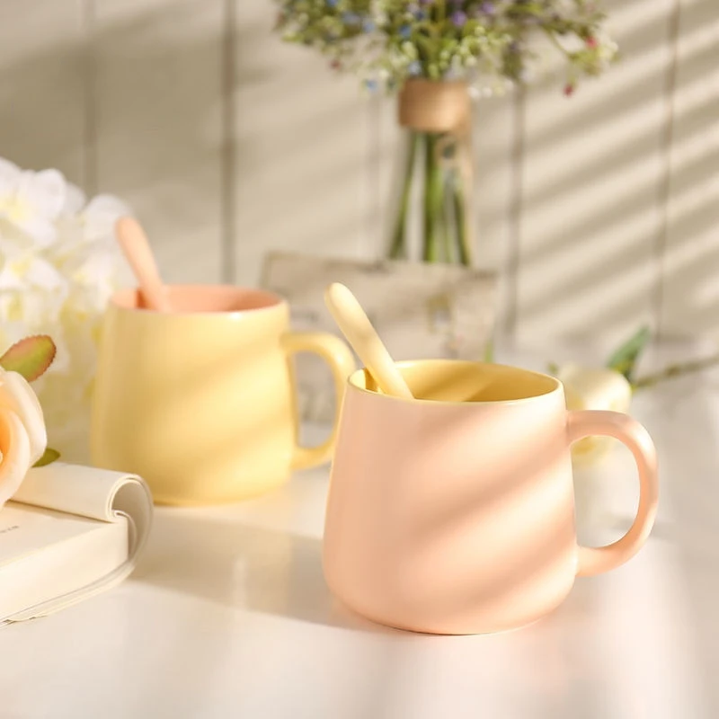 450 мл креативная кружка в скандинавском стиле с ложкой, популярная цветная кофейная чашка, простая керамическая чашка для воды, матовая молочная чашка, чашка для завтрака