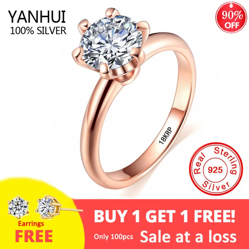 YANHUI роскошь Косынка 2.0ct серебряное обручальное кольцо оригинал...