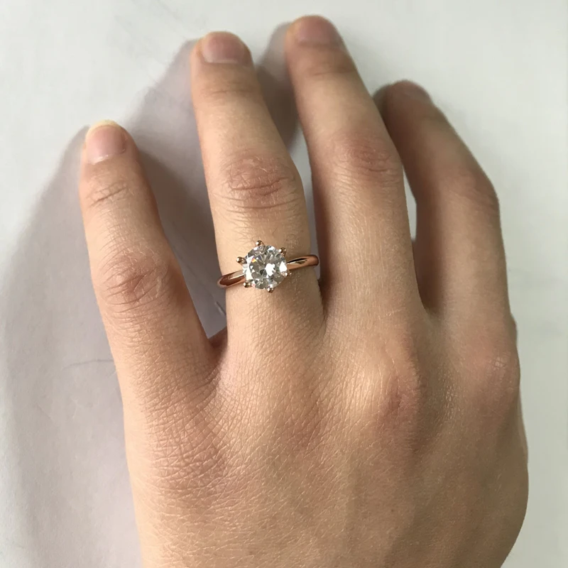 Кольцо женское из розового золота 18 К с цирконием 2 карата, JZ170