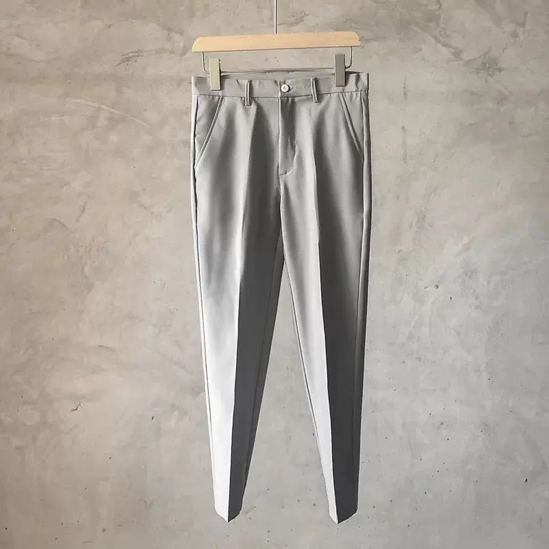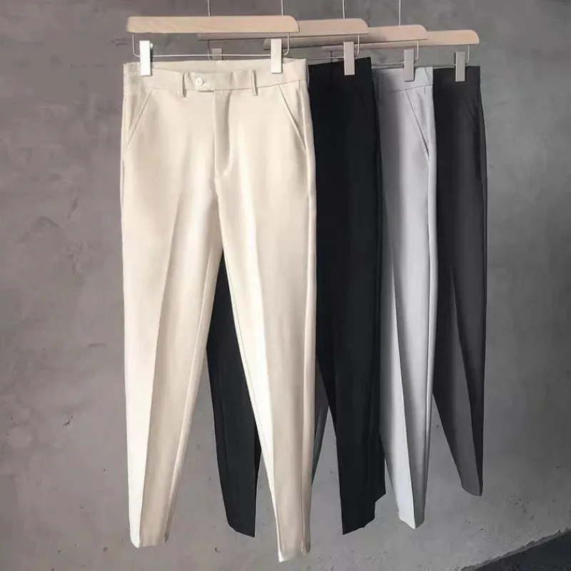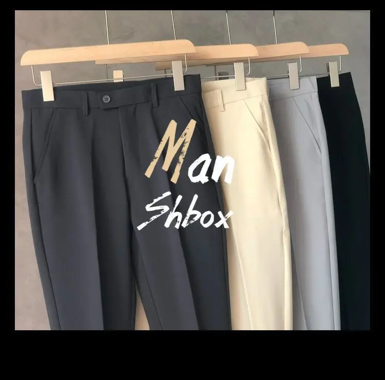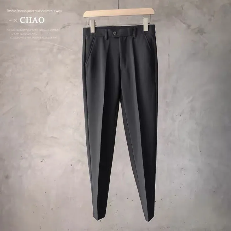 Брюки мужские укороченные прямые свободного кроя, модные повседневные Костюмные штаны в британском стиле, без глажки, однотонные
