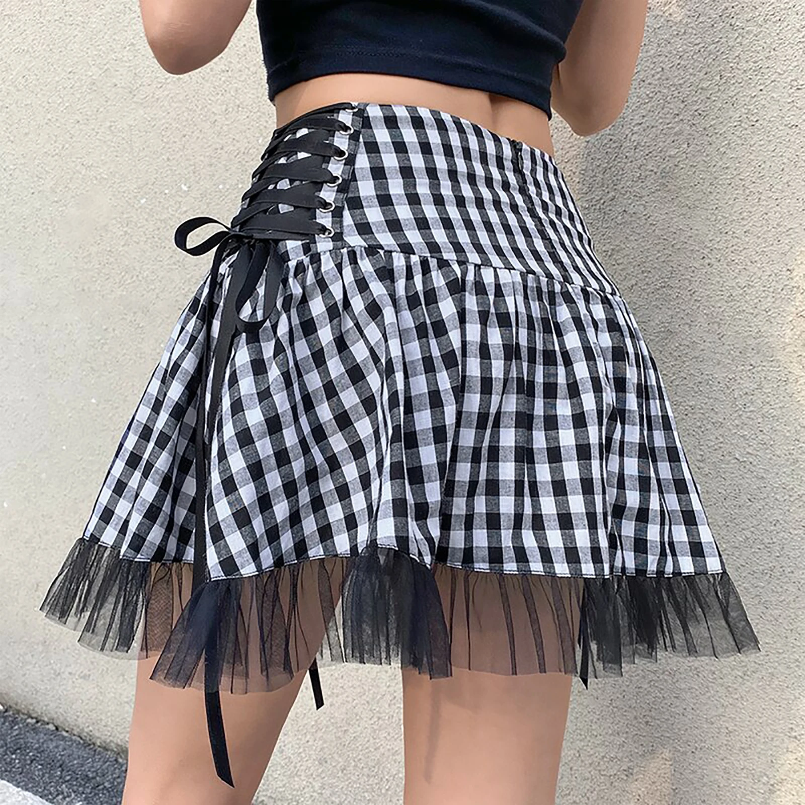 Женская юбка с завышенной талией, Милая юбка из тюля на шнуровке, л...