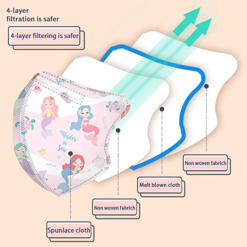Маска KN95 детская, 4 слоя, дышащая, с мультяшным принтом, FFP2, N9...