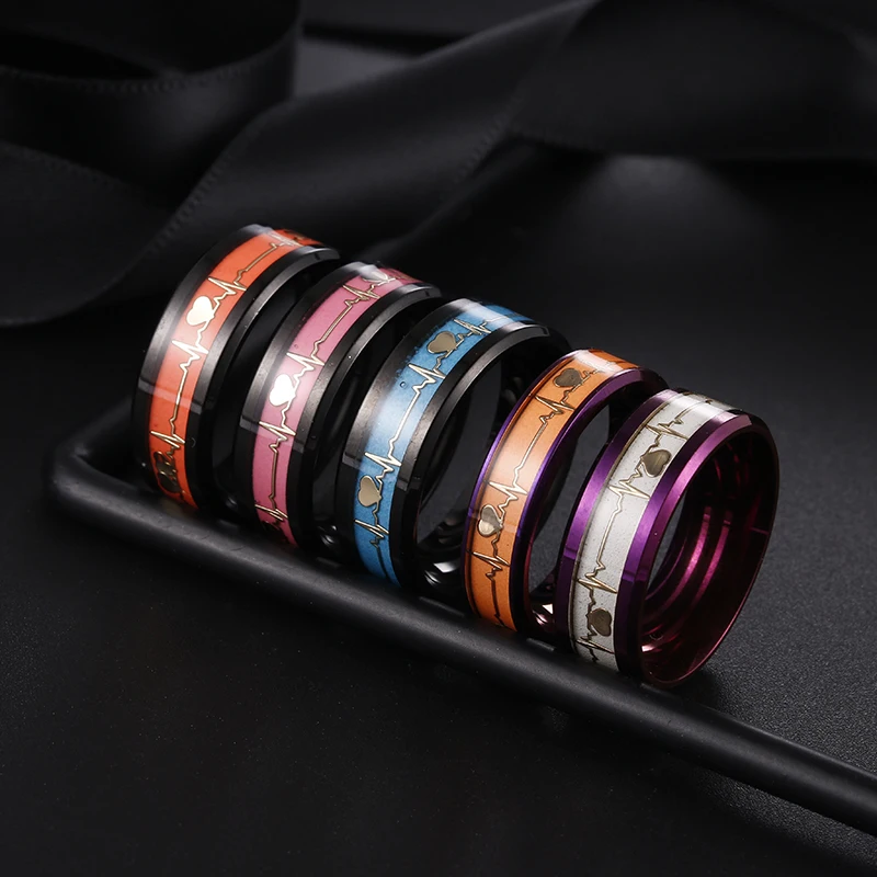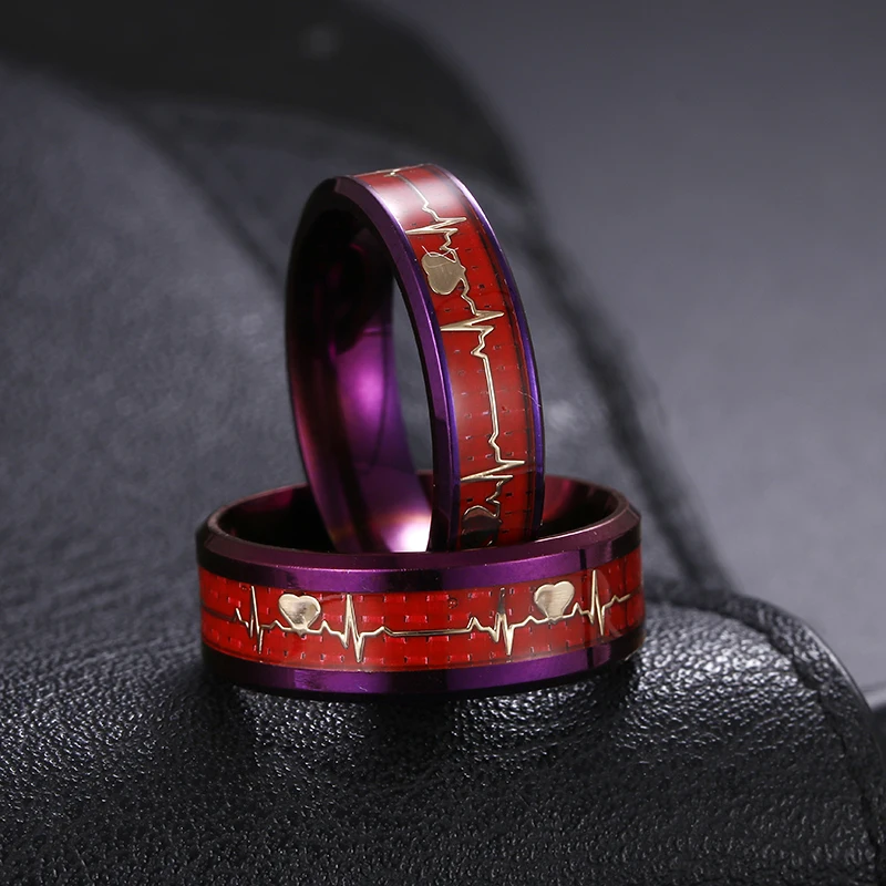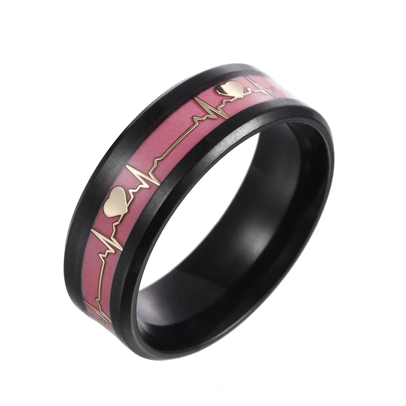 8 мм мужское кольцо любовь сердце ЭКГ спасательный круг пульс, сердцебиение кольцо для мужчин и женщин пара кольцо ЭКГ черное углеродное волокно обручальное кольцо