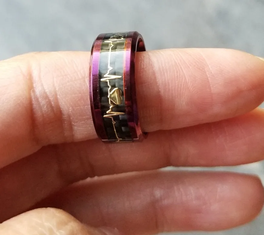 Уникальный дизайн вдохновлен изображением пульса сердцебиения и никогда не остановит ваше сердцебиение, страсть, мечты и любовь. Это кольцо имеет полированную поверхность, гладкую внутреннюю поверхность и блестящую внешнюю поверхность для удобной посадки. Изготовлен из нержавеющей стали 316L и экологически чистого углеродного волокна, он достаточно безопасен для хранения чувствительной кожи. Размер кольца; 6-13. Минималистичный стиль, носится на большом пальце, розовом, пальце или костяшках пальцев, или с другими кольцами. Подарки для мужчин и женщин-подходит для Дня матери, юбилея, свадьбы, Рождества, Дня Святого Валентина, выпускного вечера, Рождества, праздника, вечеринки, танцев, дня рождения матери, бабушки, сестры, мать, жена, девушка, пара, пара, девушка или себя.