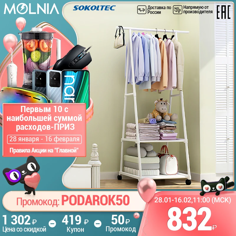 SOKOLTEC органайзер для хранения вешалка напольная съемная Вешалка для одежды держатель для полотенец Полки для обуви MOLNIA