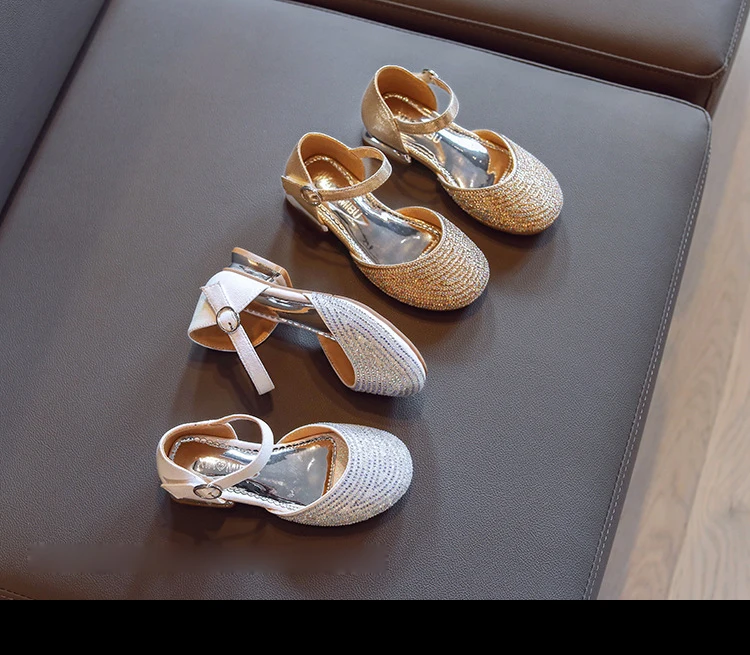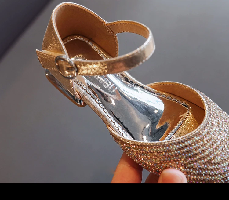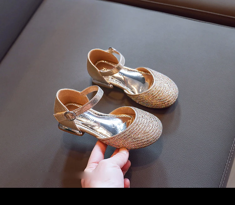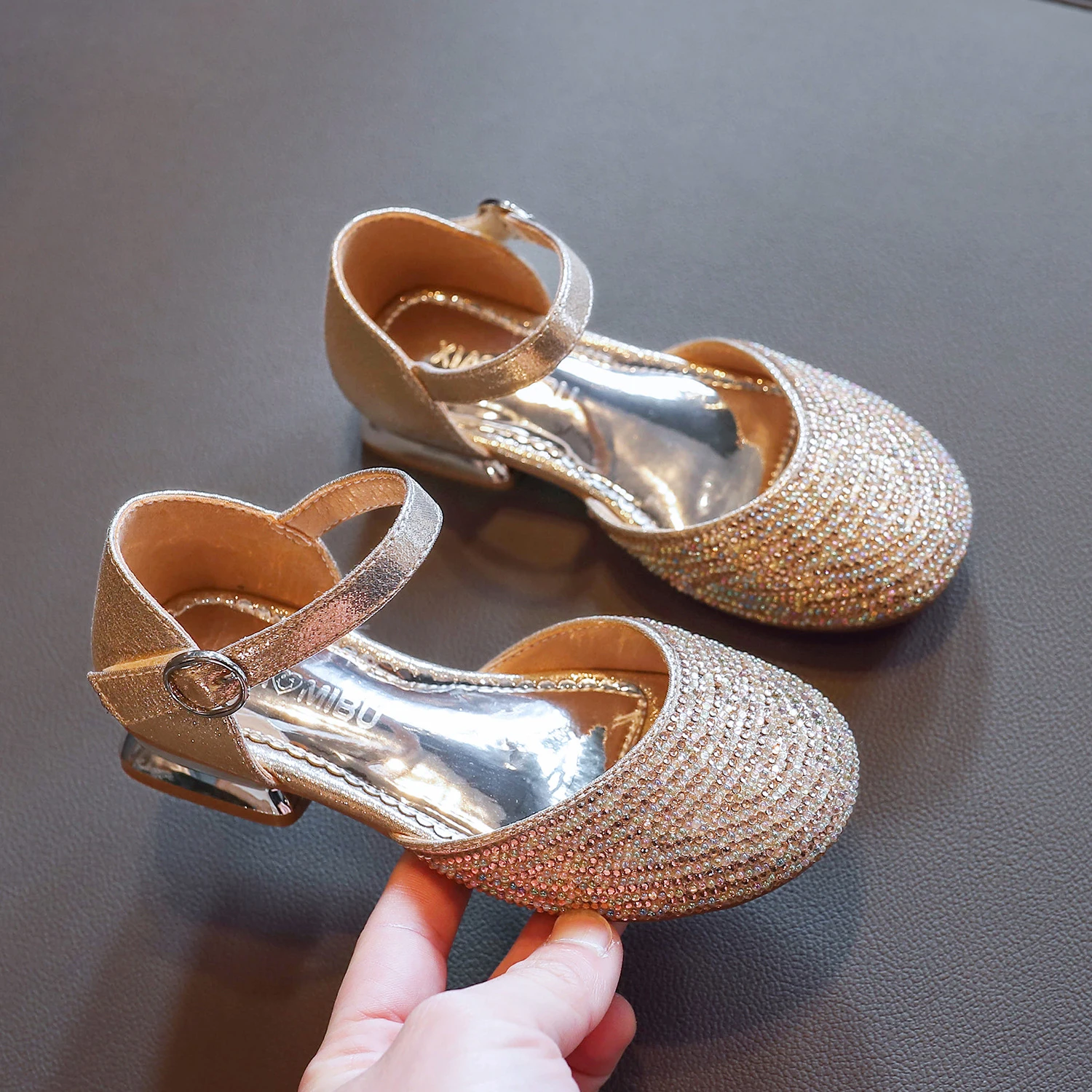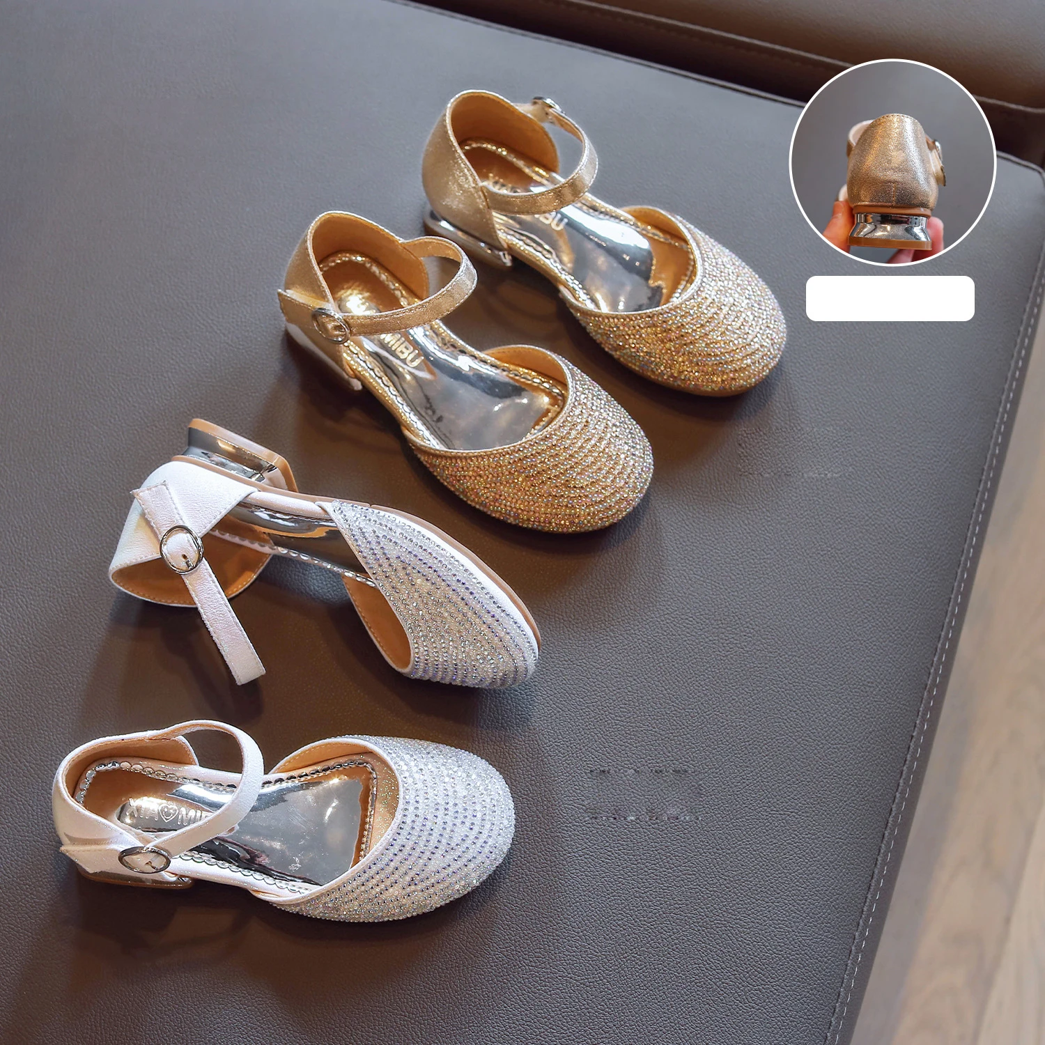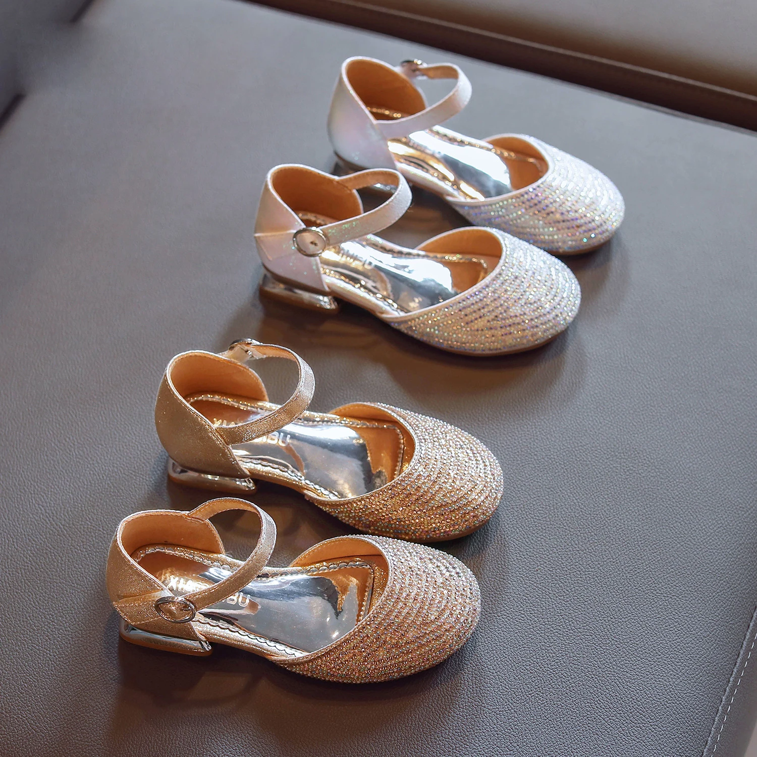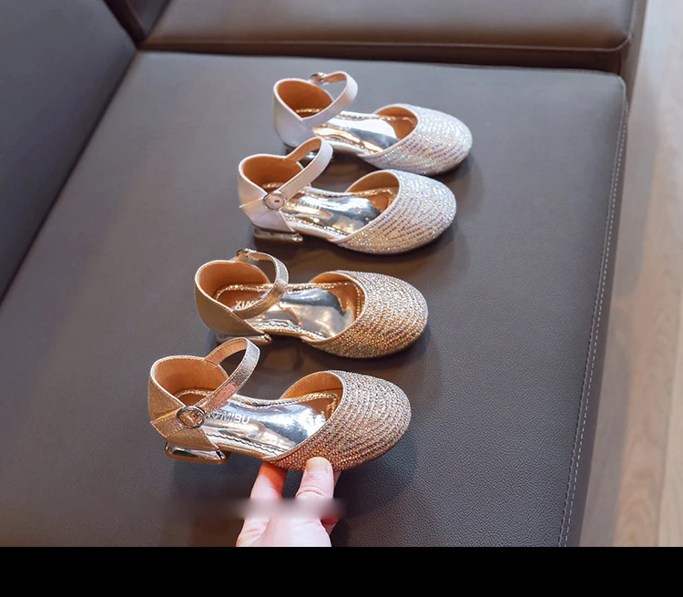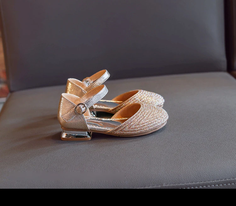 Новинка Весна 2021, детская обувь принцессы, брендовая Классическая обувь для маленьких девочек, детская обувь со стразами, мягкая обувь на серебряном каблуке, Мэри Джейн, Новинка