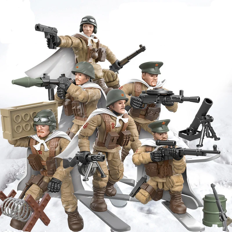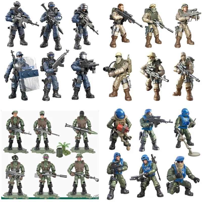 6 шт./лот, Военная серия, русские, США, спецназ, фигурки, модель, город, спецназ, полицейское оружие, упаковка, армейское оружие, кирпичи, аксессуары
