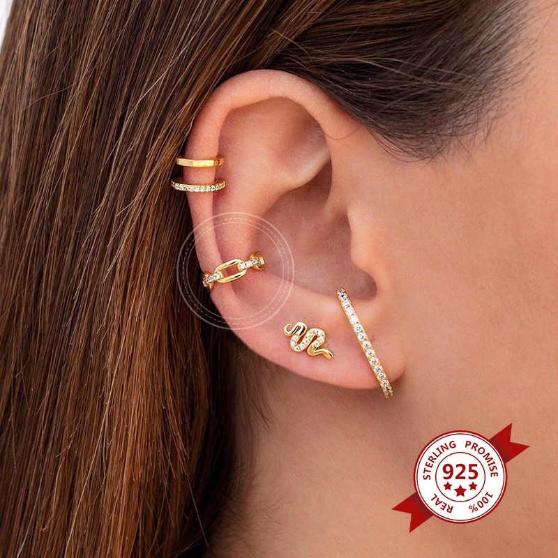 1 шт покрытые 24-каратным золотом/925 Серебряная Ушная манжета для женщин очаровательные циркониевые серьги-клипсы без пирсинга ювелирные изделия