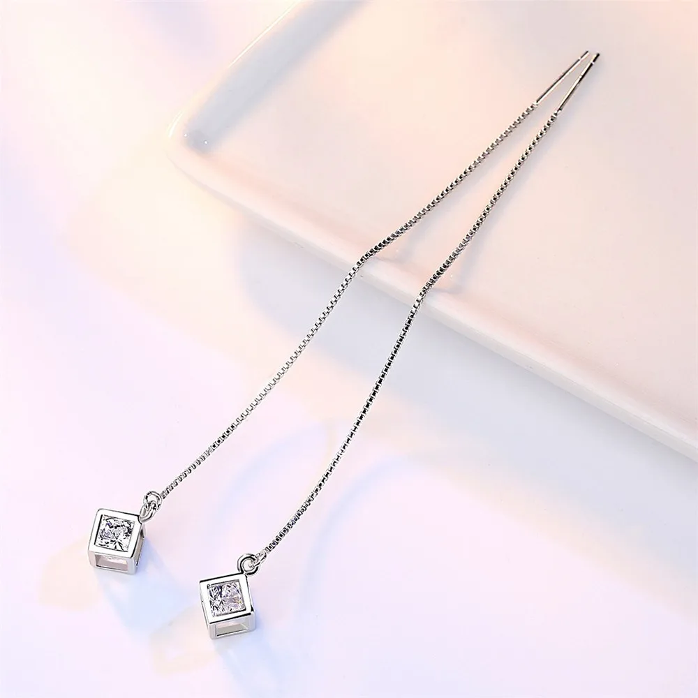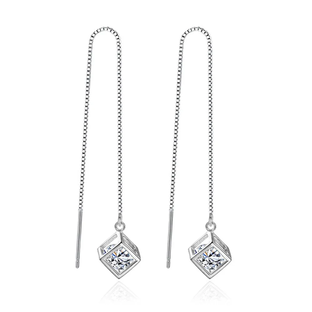 925 стерлингового серебра Куб Циркон, кристалл, Длинная кисточка се...