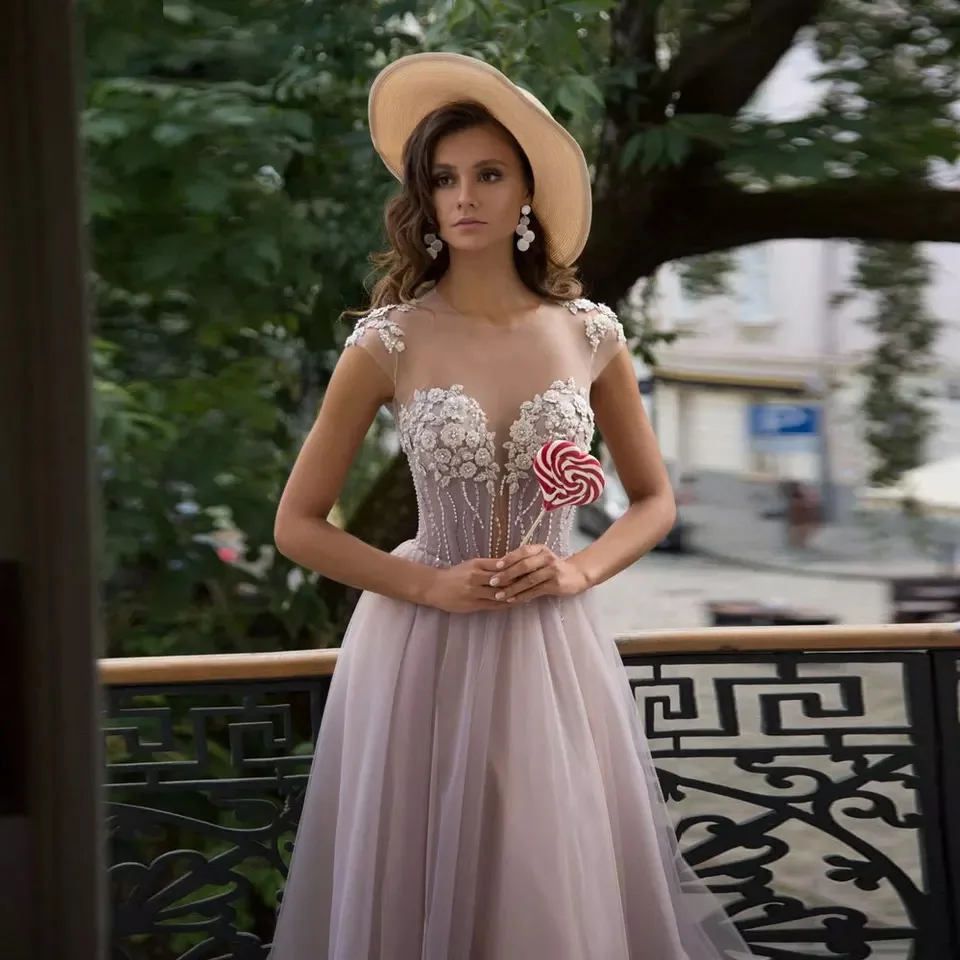 Элегантные вечерние платья 2021, прозрачное Тюлевое платье с вырезом лодочкой и рукавами-крылышками, кружевной аппликацией и блестками, вечернее платье на выпускной, черное ТРАПЕЦИЕВИДНОЕ до пола