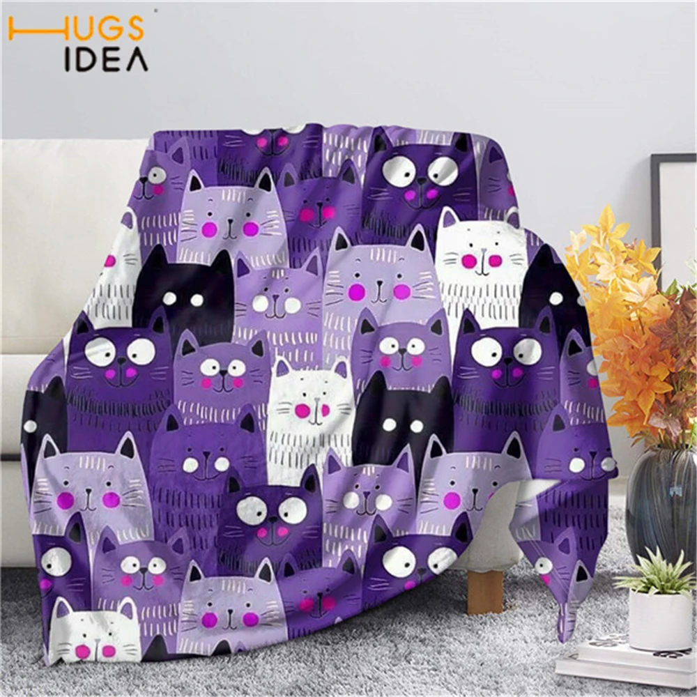 HUGSIDEA мягкое Флисовое одеяло для диванапостельное белье с принтом кошки плед одеяло для кровати мягкое для путешествий теплое одеяло для взрослых и детей
