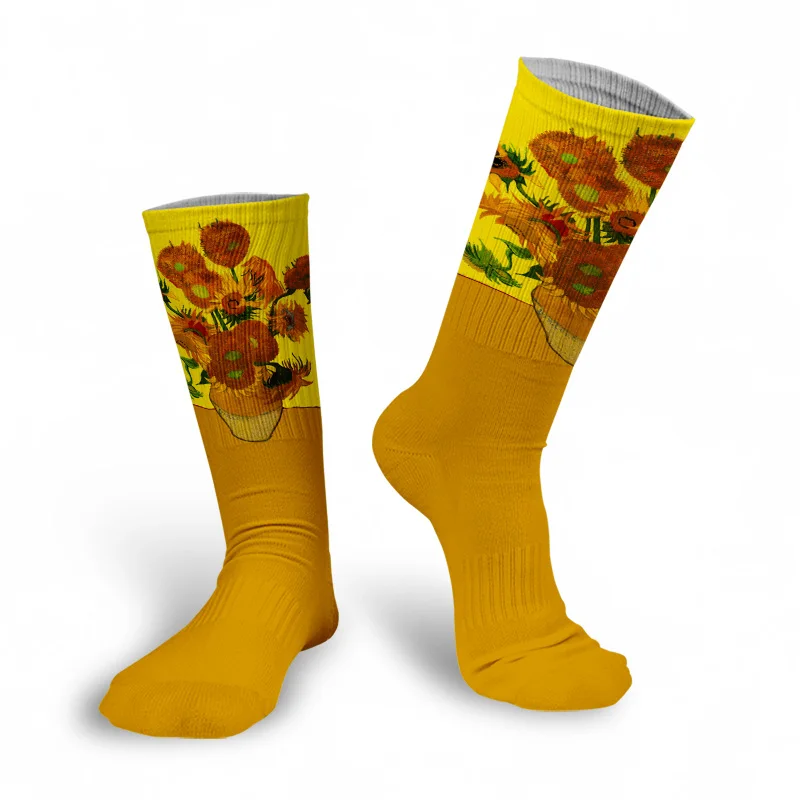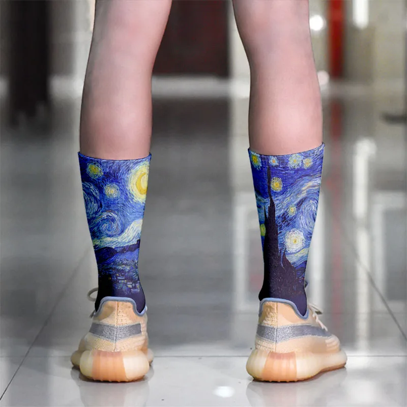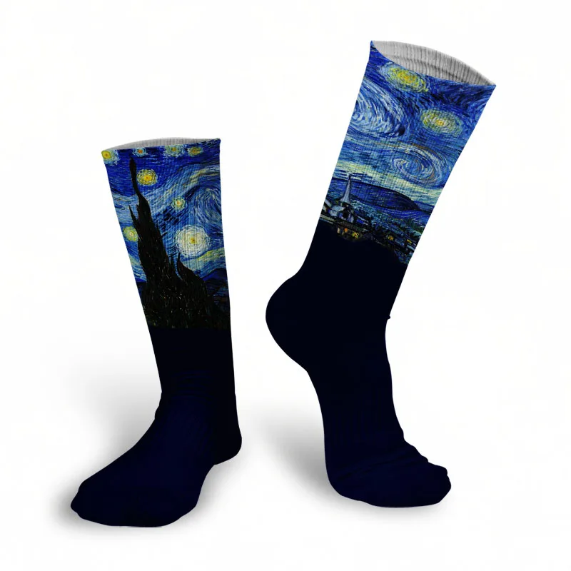 Спортивные носки с изображением звездной ночи для унисекс, Ван Гог, Мона Лиза, Ретро стиль, забавные длинные носки, хлопковые носки для бега и велоспорта