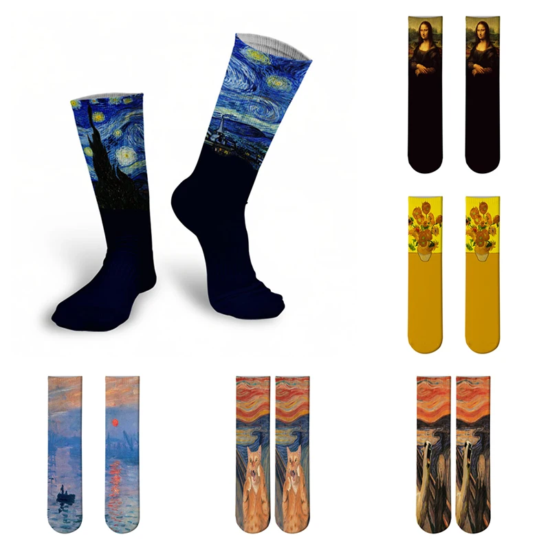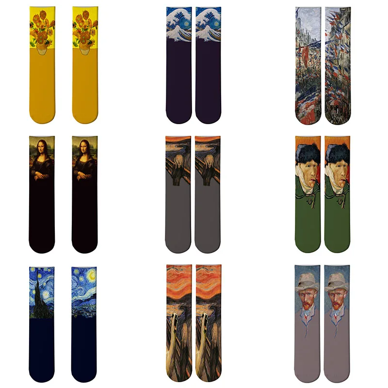 Носки унисекс с изображением всемирно известной масляной живописи, ...