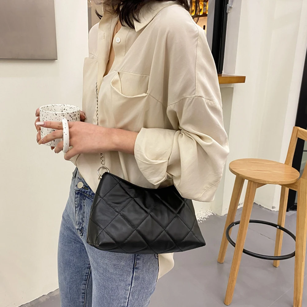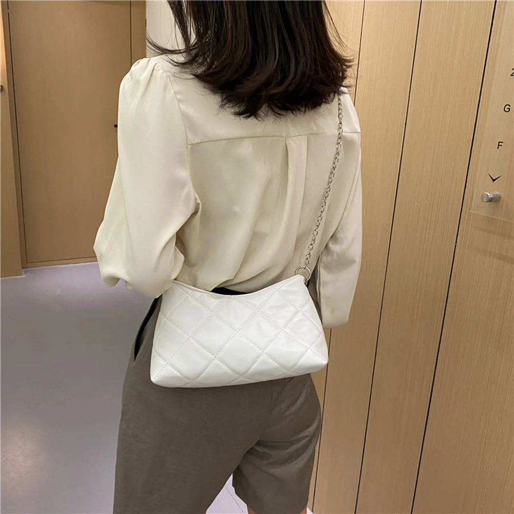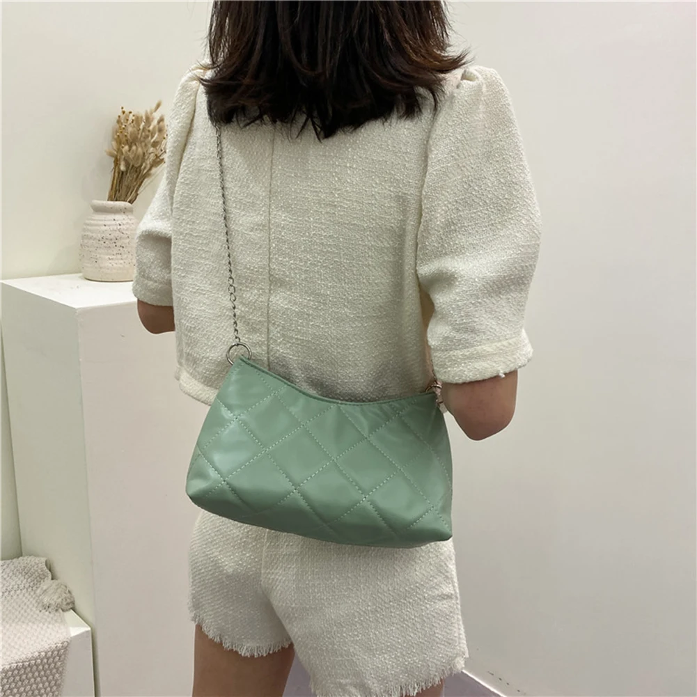 Модная женская однотонная сумка-мессенджер через плечо из искусственной кожи на цепочке, Женская винтажная сумка-хобо на молнии
