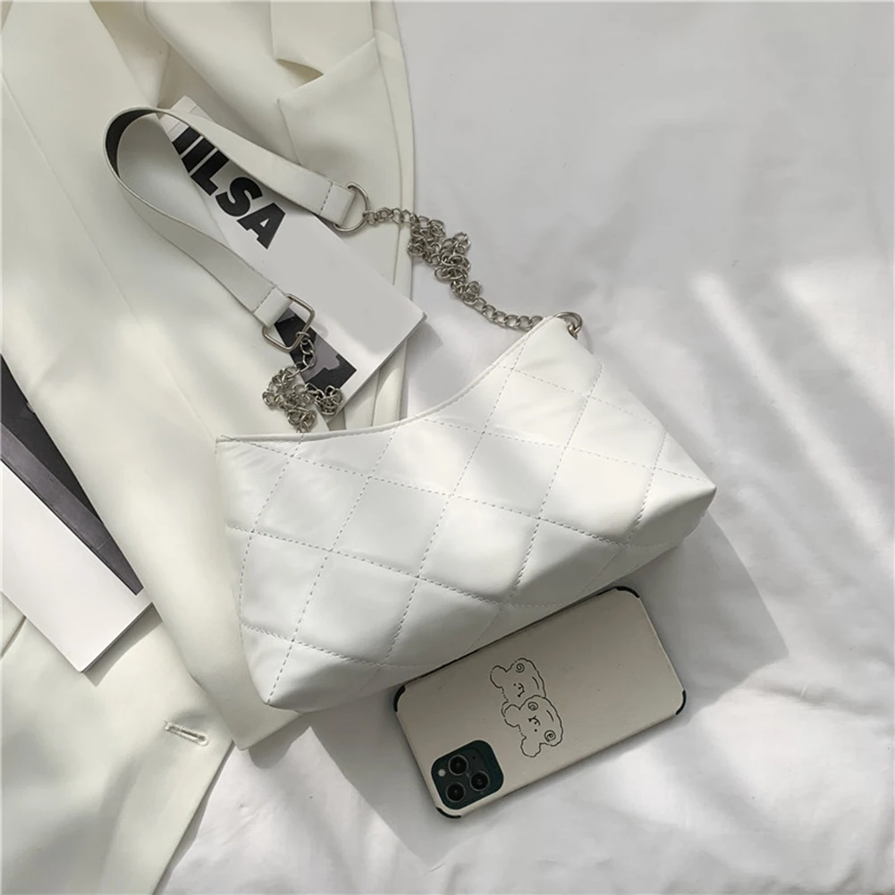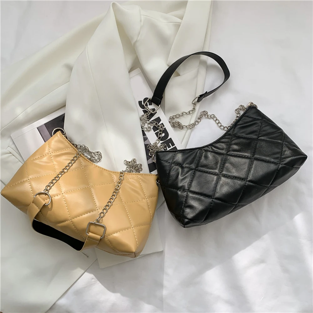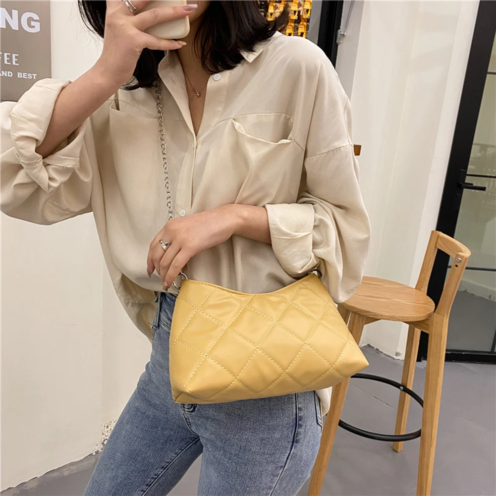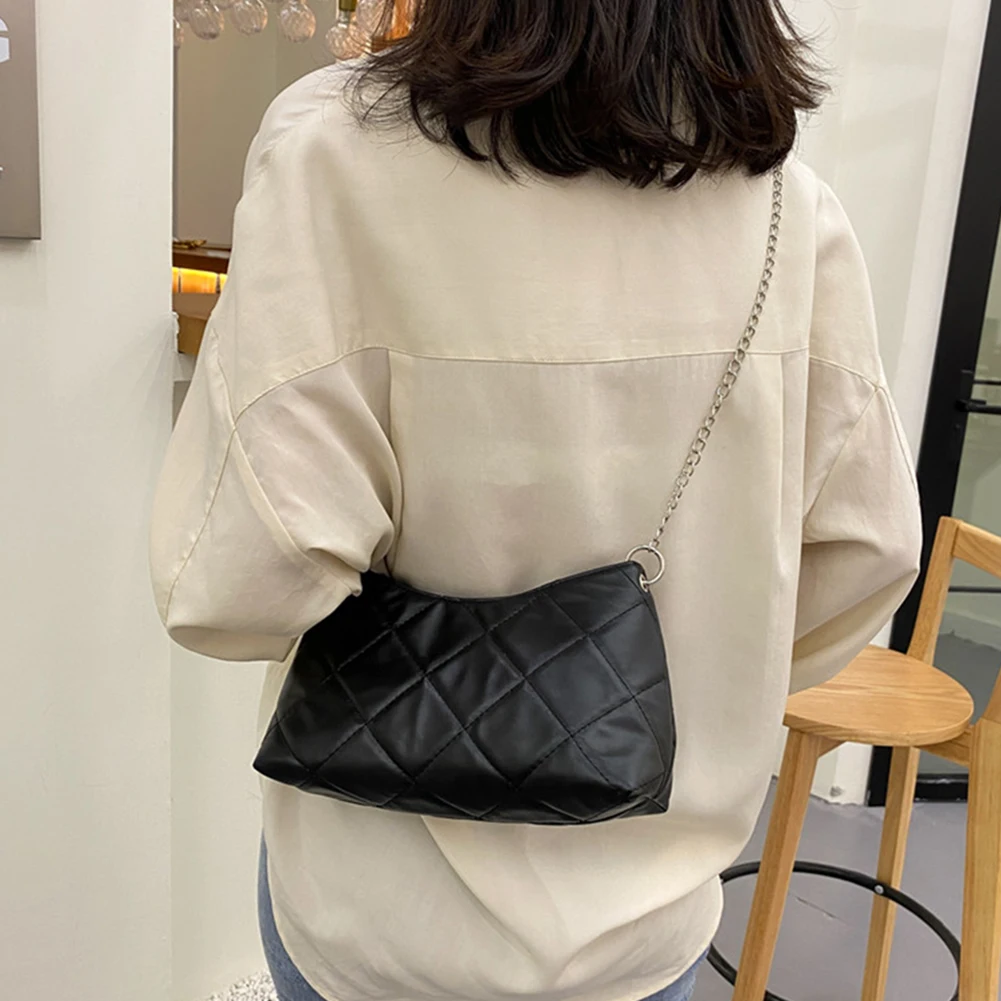 Модная женская однотонная сумка-мессенджер через плечо из искусственной кожи на цепочке, Женская винтажная сумка-хобо на молнии