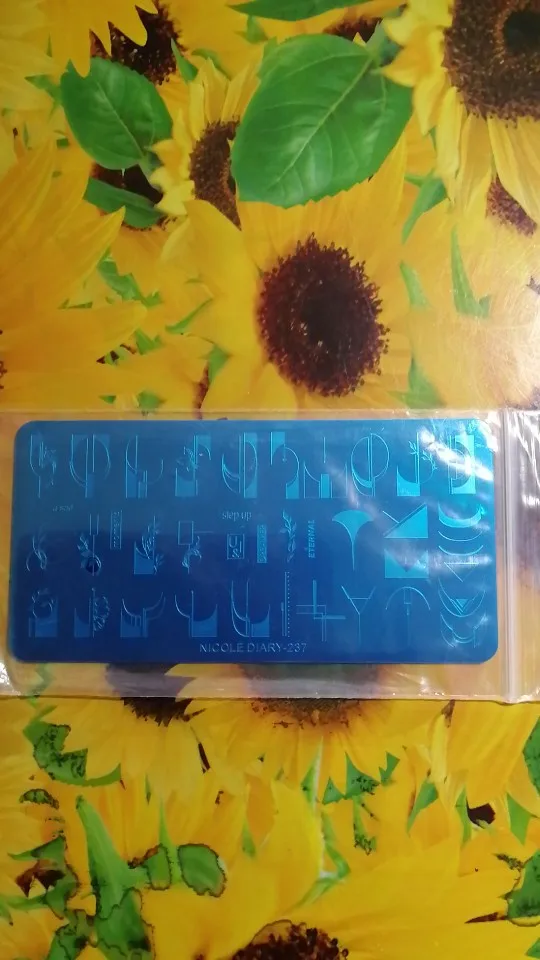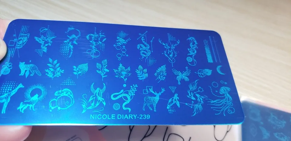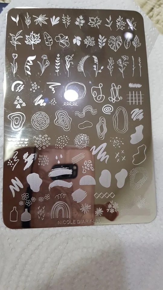 Трафарет для стемпинга ногтей NICOLE DIARY-237, в виде листа, геометрической формы, из нержавеющей стали