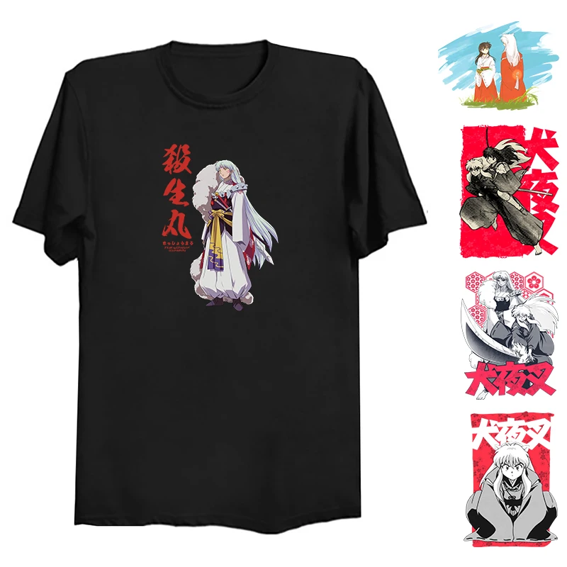 Футболка Inuyasha с аниме Sesshoumaru, мультяшная футболка с коротким рукавом Higurashi Kagome, футболки, топы, женские футболки Kikyo Kawaii, одежда
