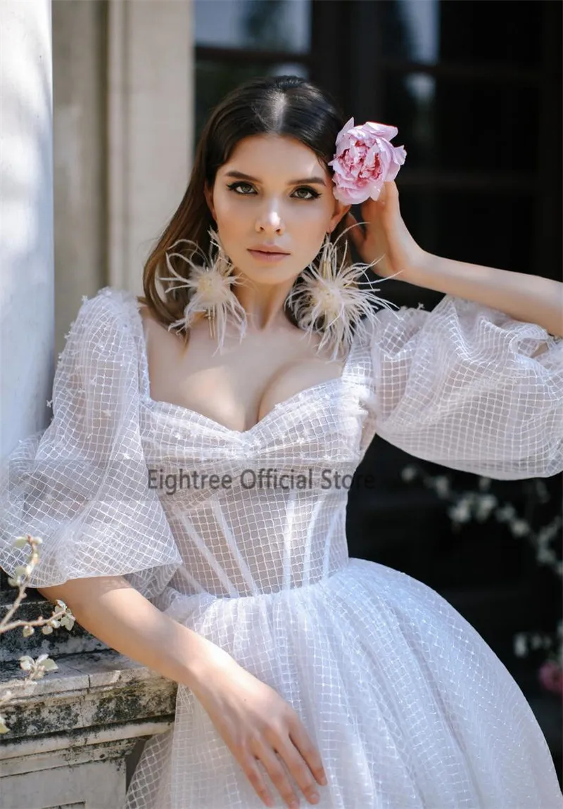 Короткое свадебное платье из тюля в горошек, с длинным рукавом