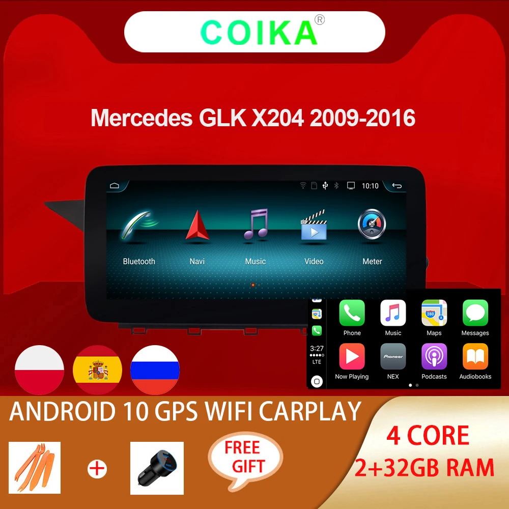 Автомобильная Мультимедийная система Android 10, стерео для Mercedes GLK X204 2008-2015 BT Carplay WIFI 2 + 32 ГБ IPS, сенсорный экран, GPS-навигатор