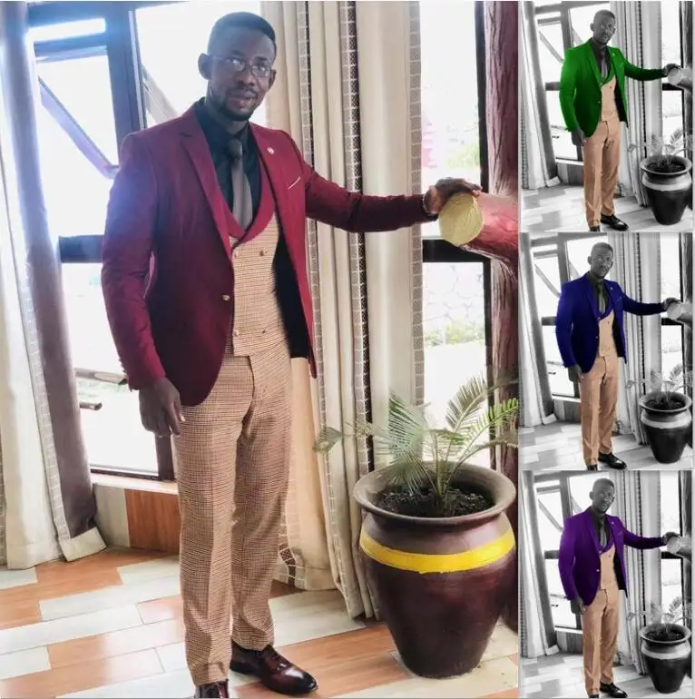 Новейший дизайн, классические бордовые свадебные костюмы для мужчин, облегающие смокинги для жениха, мужской костюм из 3 предметов, деловые Пиджаки и брюки
