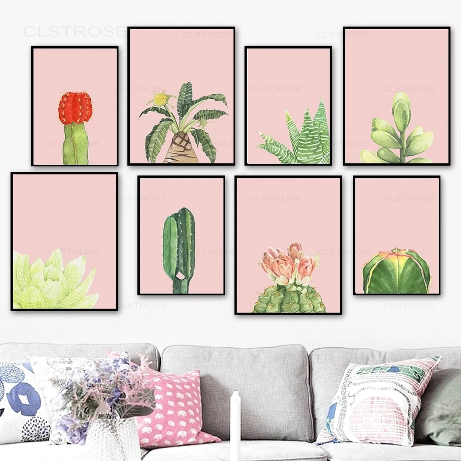 Алоэ Cactu колючая груша лист акварель настенная Картина на холсте скандинавские постеры и принты настенные картины для декора гостиной