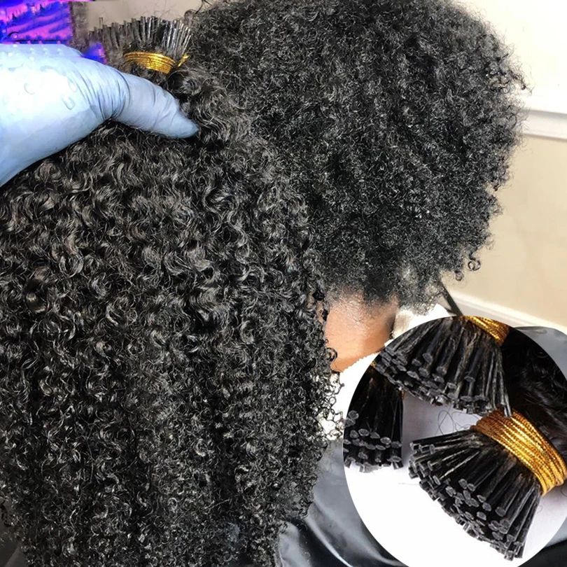 Афро Курчавые Кудрявые I-образные наконечники, 100% натуральные чел...