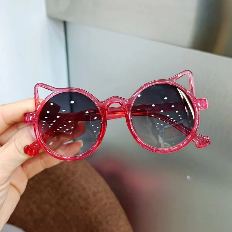 Детские солнцезащитные очки с милыми красными кошачьими ушками, роз...