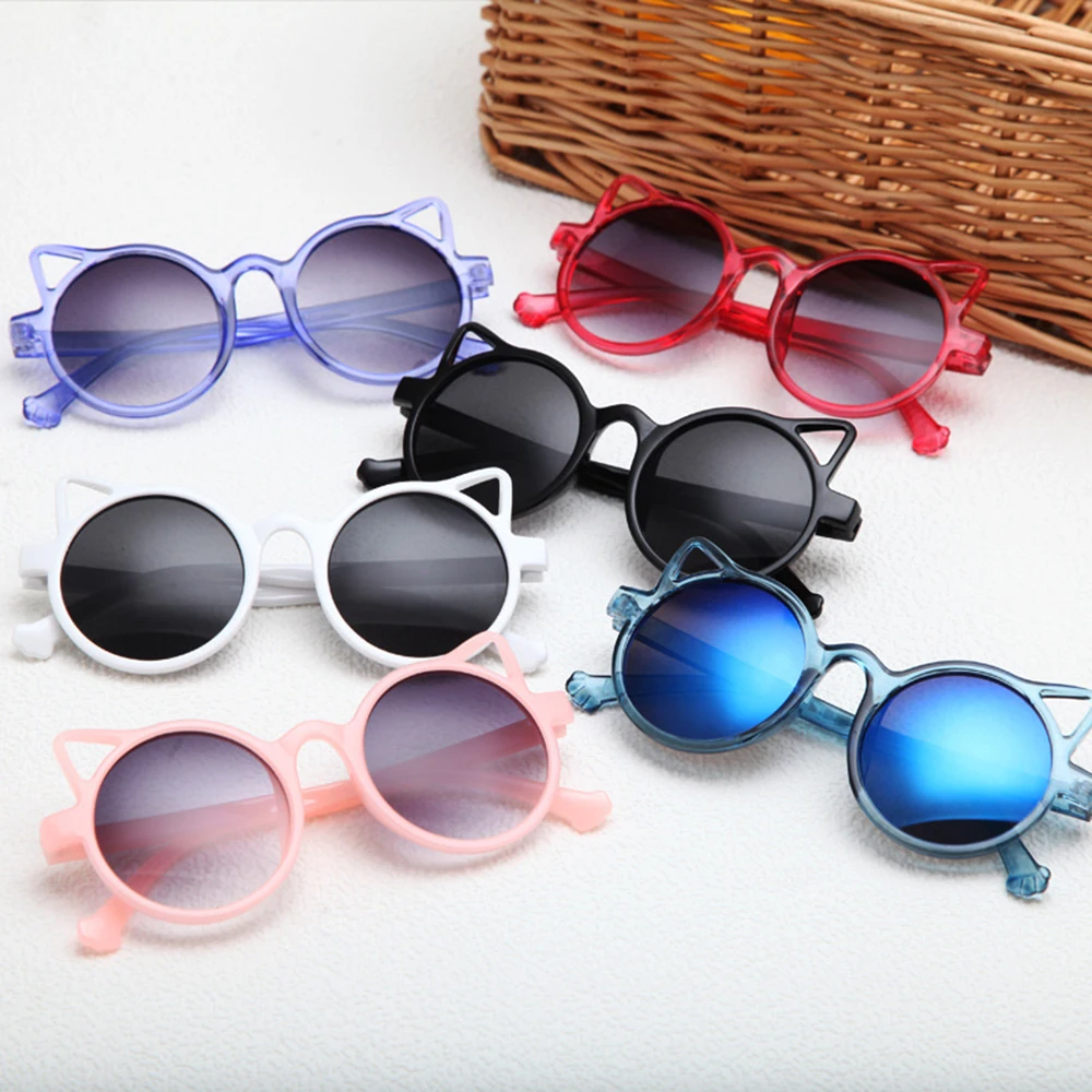 2021 модные детские солнцезащитные очки кошачий глаз, детские солнцезащитные очки, Детские винтажные цветные очки, милые черные круглые очки UV400 для мальчиков и девочек