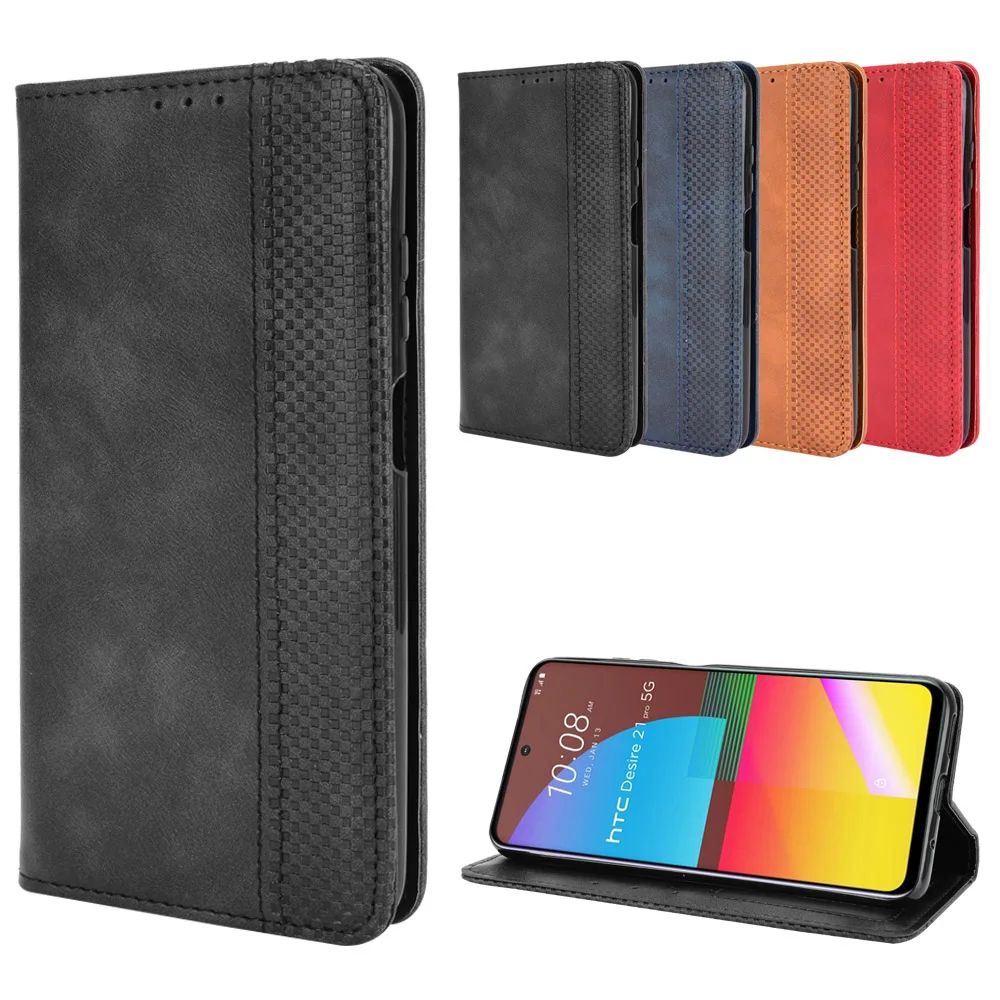 Роскошный тонкий кожаный флип-чехол в стиле ретро для HTC U20 5G че...