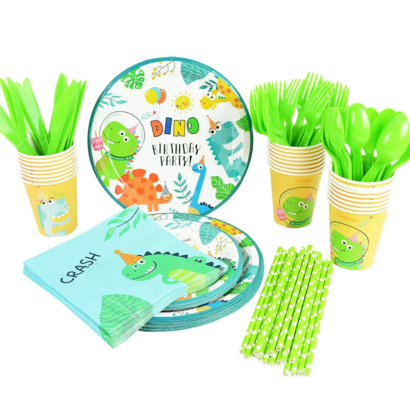 Одноразовая посуда для мальчиков и девочек, 1-16 шт.компл., динозав...