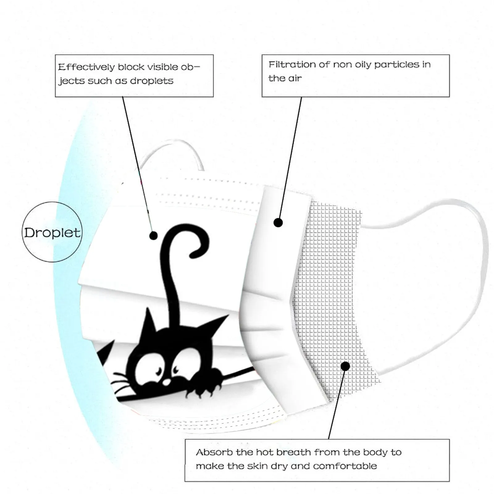 10203050100 шт одноразовая маска с принтом кота Нетканая маска из 3 слоев фильтр Анти-пыль дышащая маска для взрослых ушной крючок в наличии
