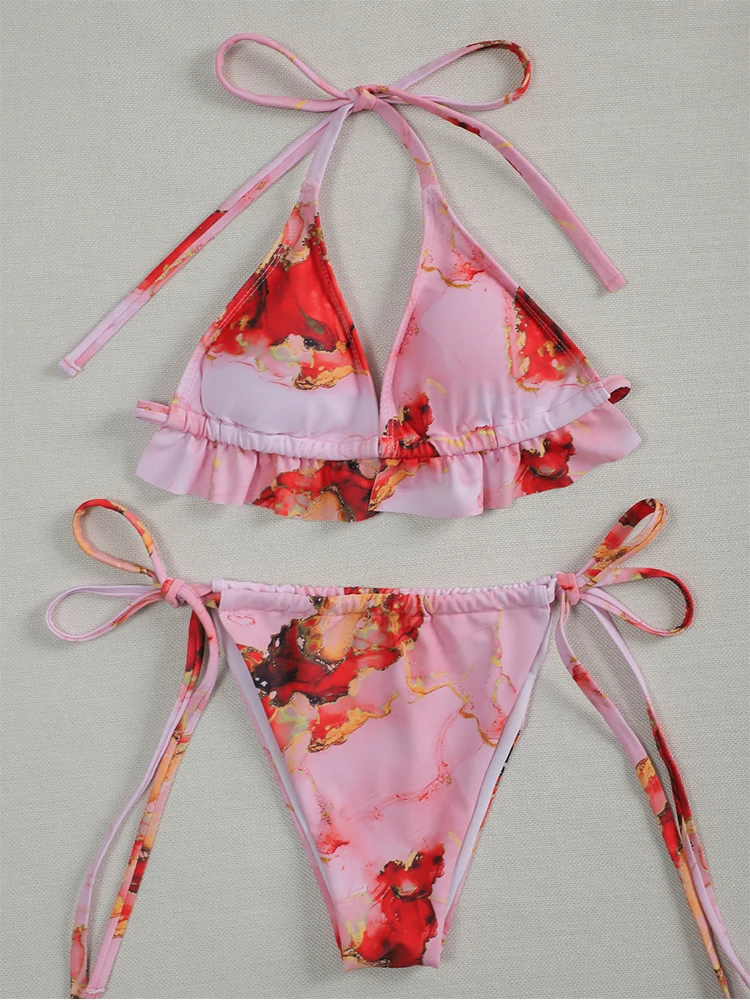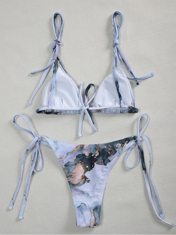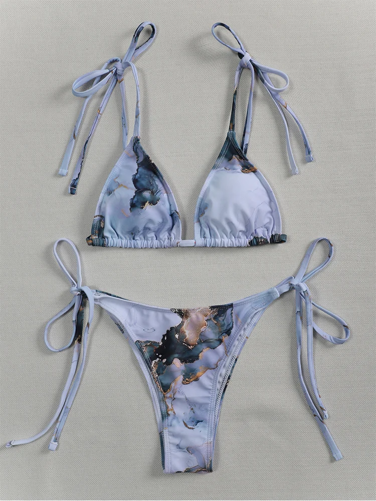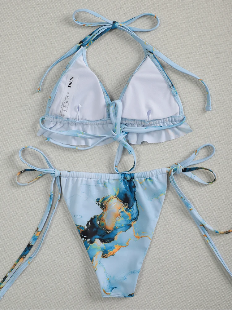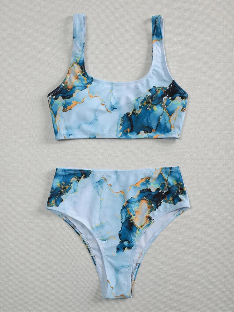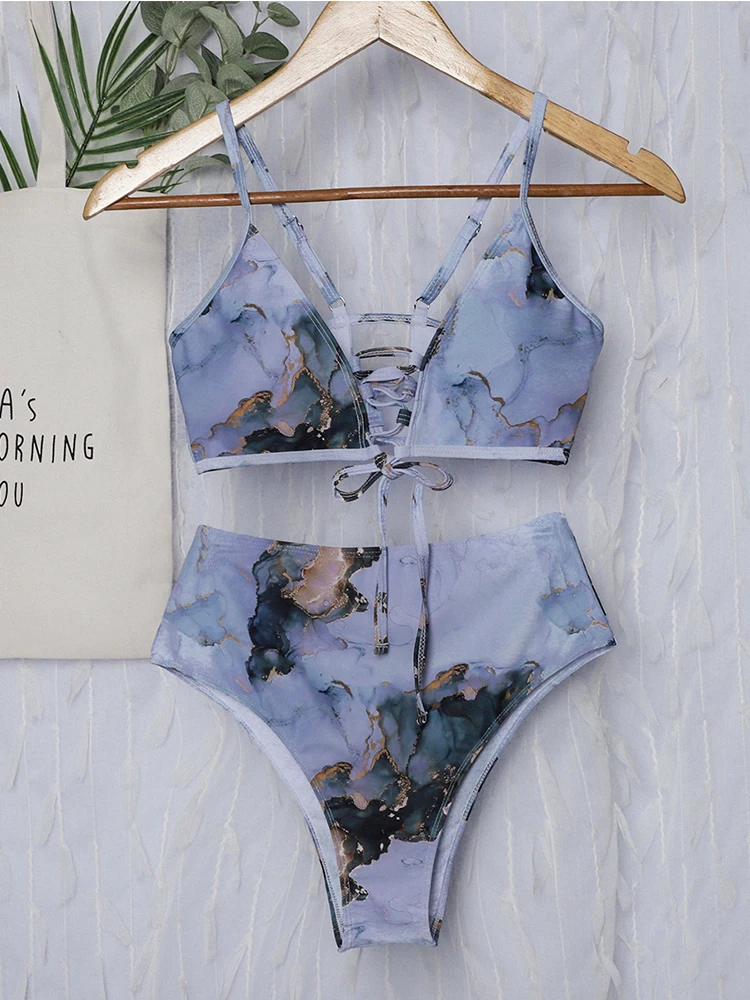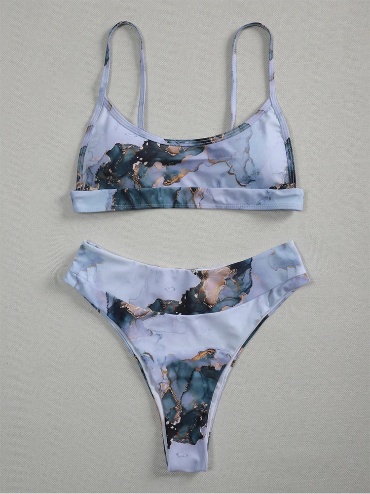 Новинка 2022, пикантный мраморный купальный костюм с принтом, спортивный топ-труба с высокой талией, Женская пляжная одежда для плавания с эффектом пуш-ап