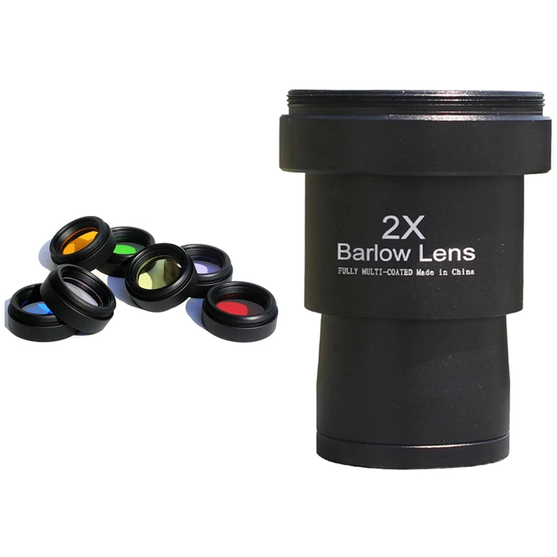 1 комплект 1,25 дюйма Цвет Комплект фильтров нитка и 1 шт. 1,25 дюймов 2X телескоп с линзой Барлоу, полностью металлический FMC зеленой пленкой с M42 нить