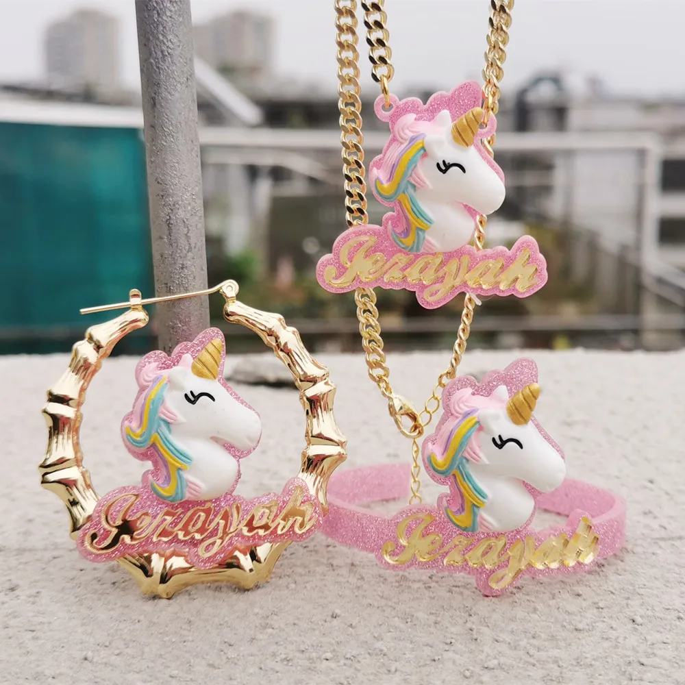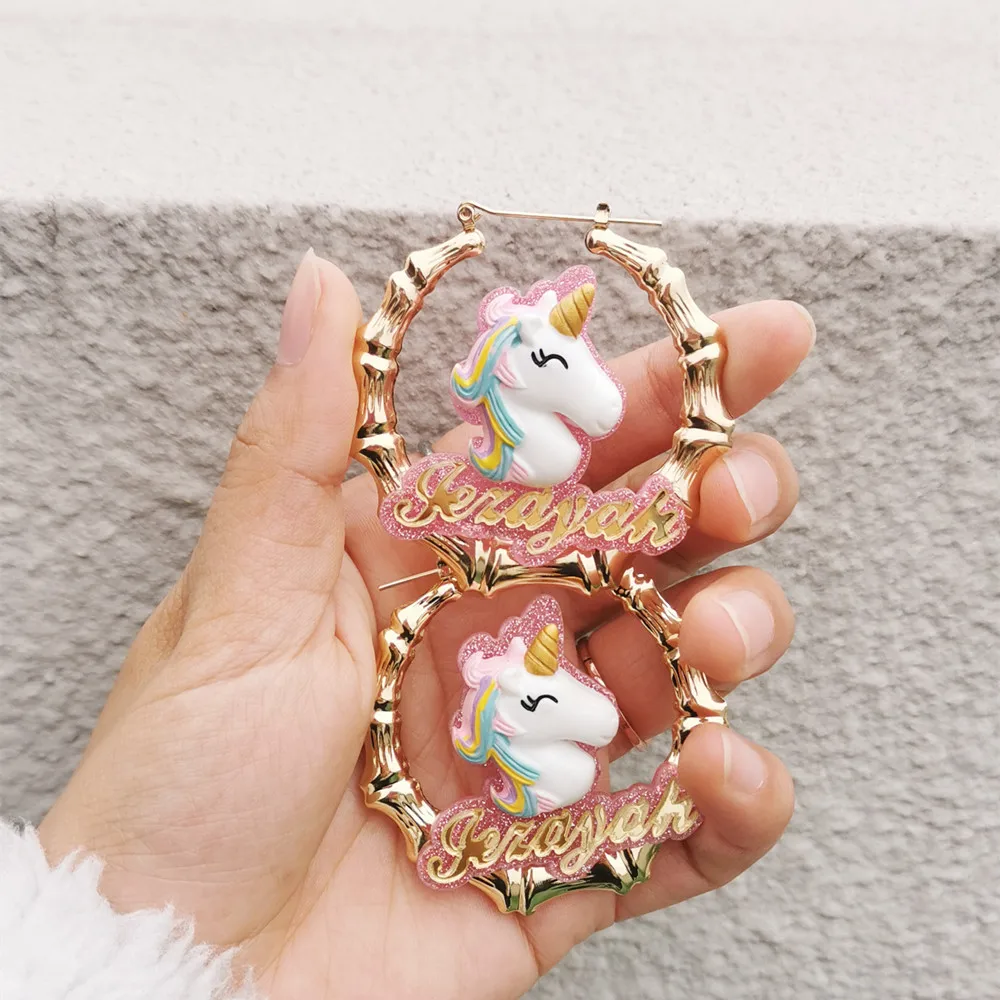 2021 новые серьги с именем животных на заказ, Детские милые Бамбуковые серьги-кольца, детское ожерелье, индивидуальное название, браслет, подарок