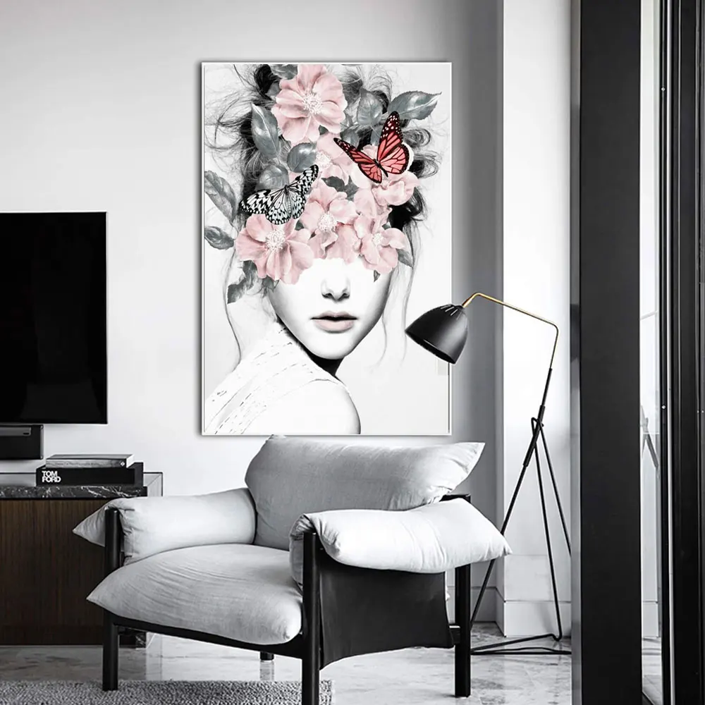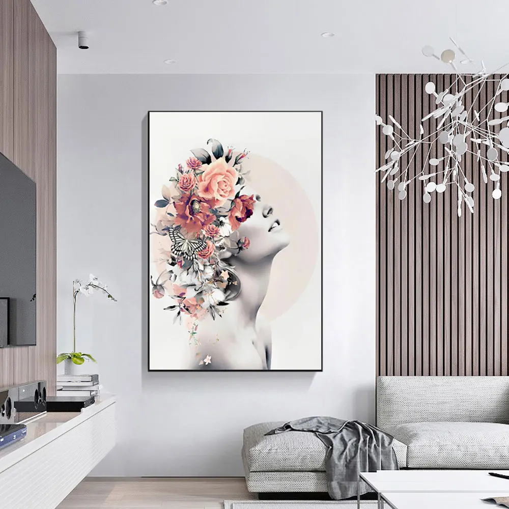 Постеры и принты с изображением головы цветка и сексуальной женщины, Картина на холсте с изображением нордической фигуры, картина с цветами для гостиной, спальни, подарок