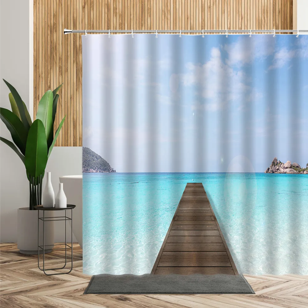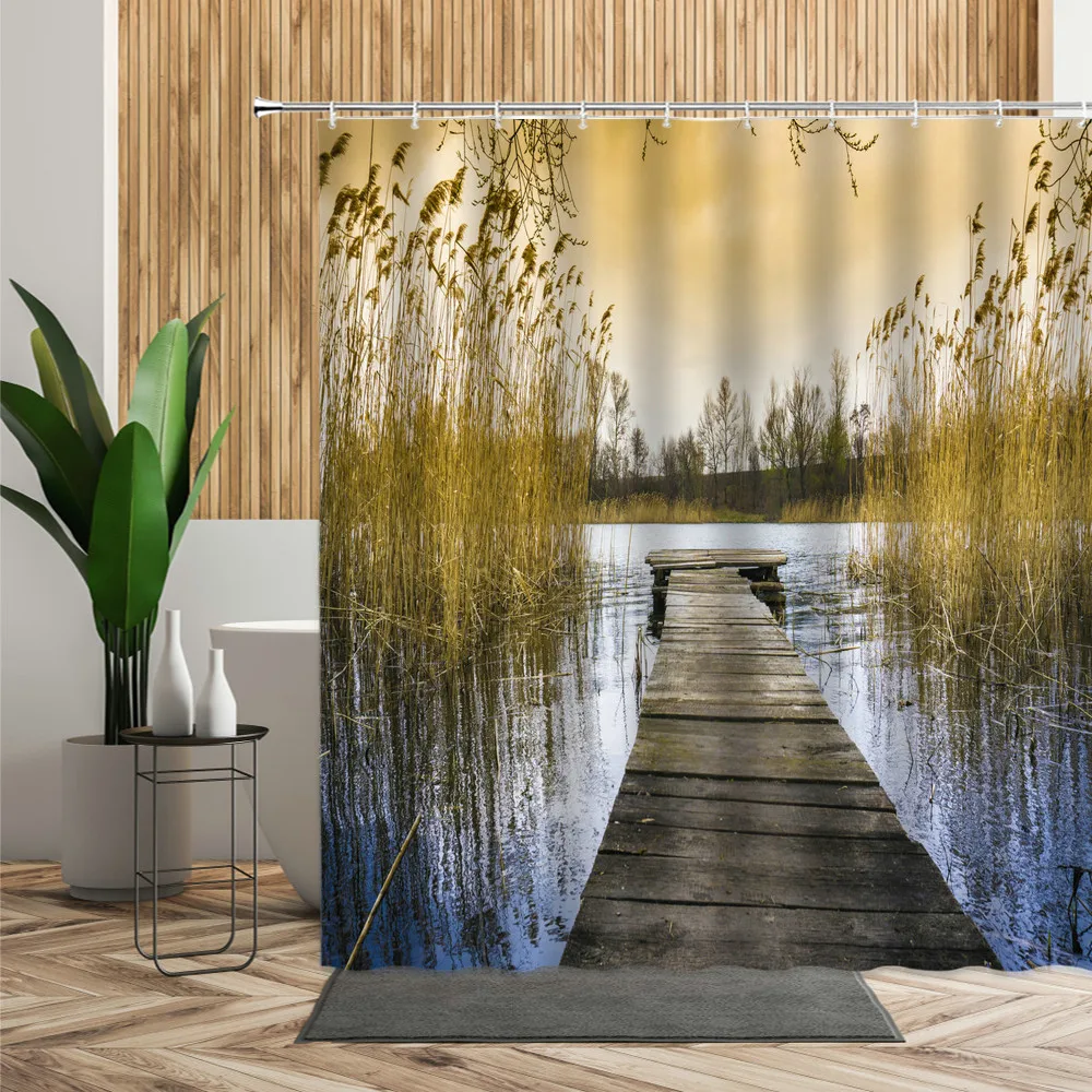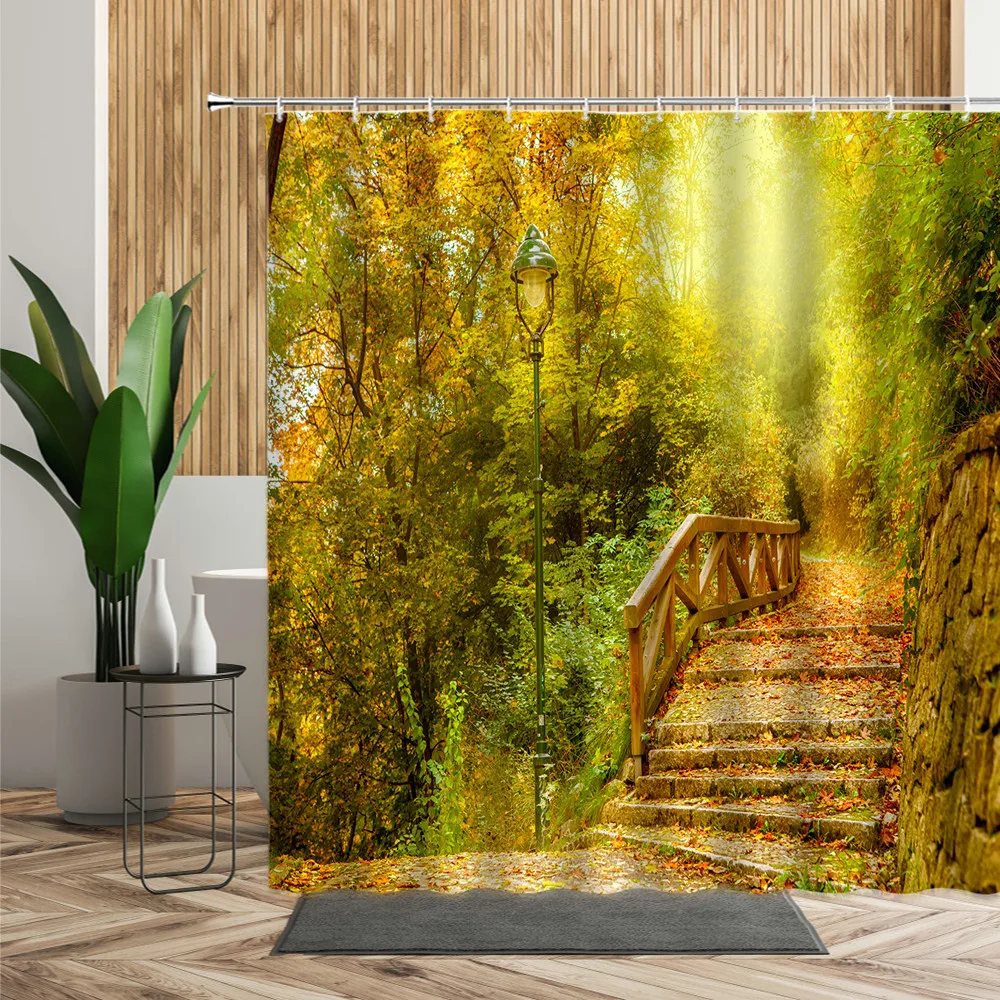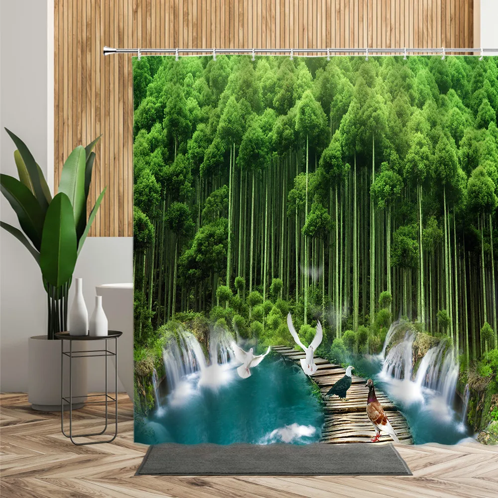 Занавеска для душа с 3d-изображением летнего пейзажа, тканевая висячая занавеска для ванной с мотивом леса, для гостиной, домашний декор