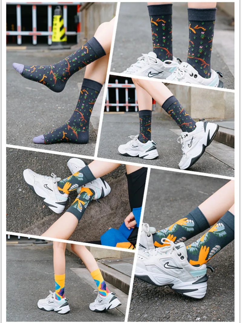 Новинка, Лидер продаж, французские стильные мужские и женские Веселые короткие носки, модные креативные смешные носки в стиле Харадзюку С абстрактной картиной маслом