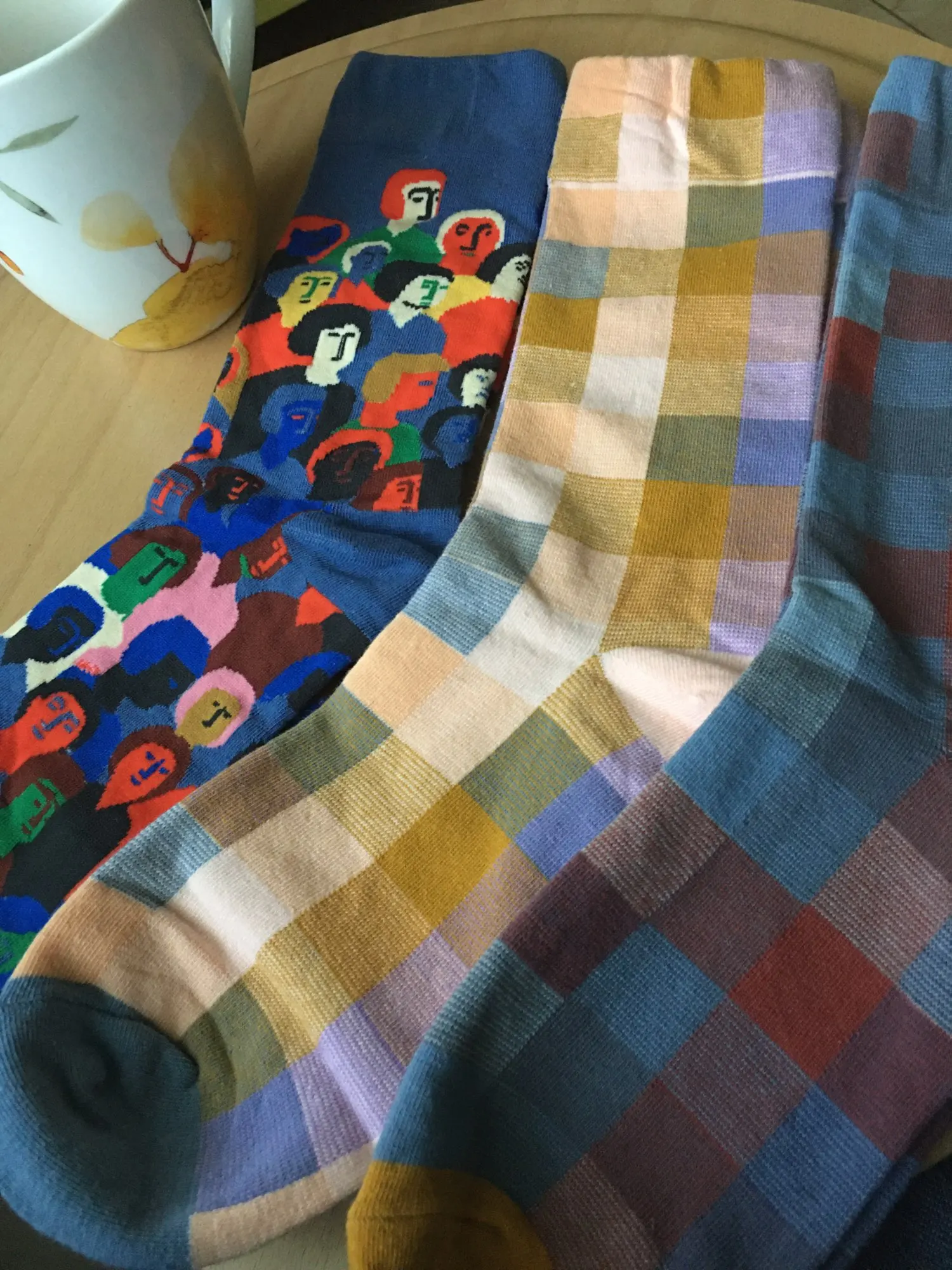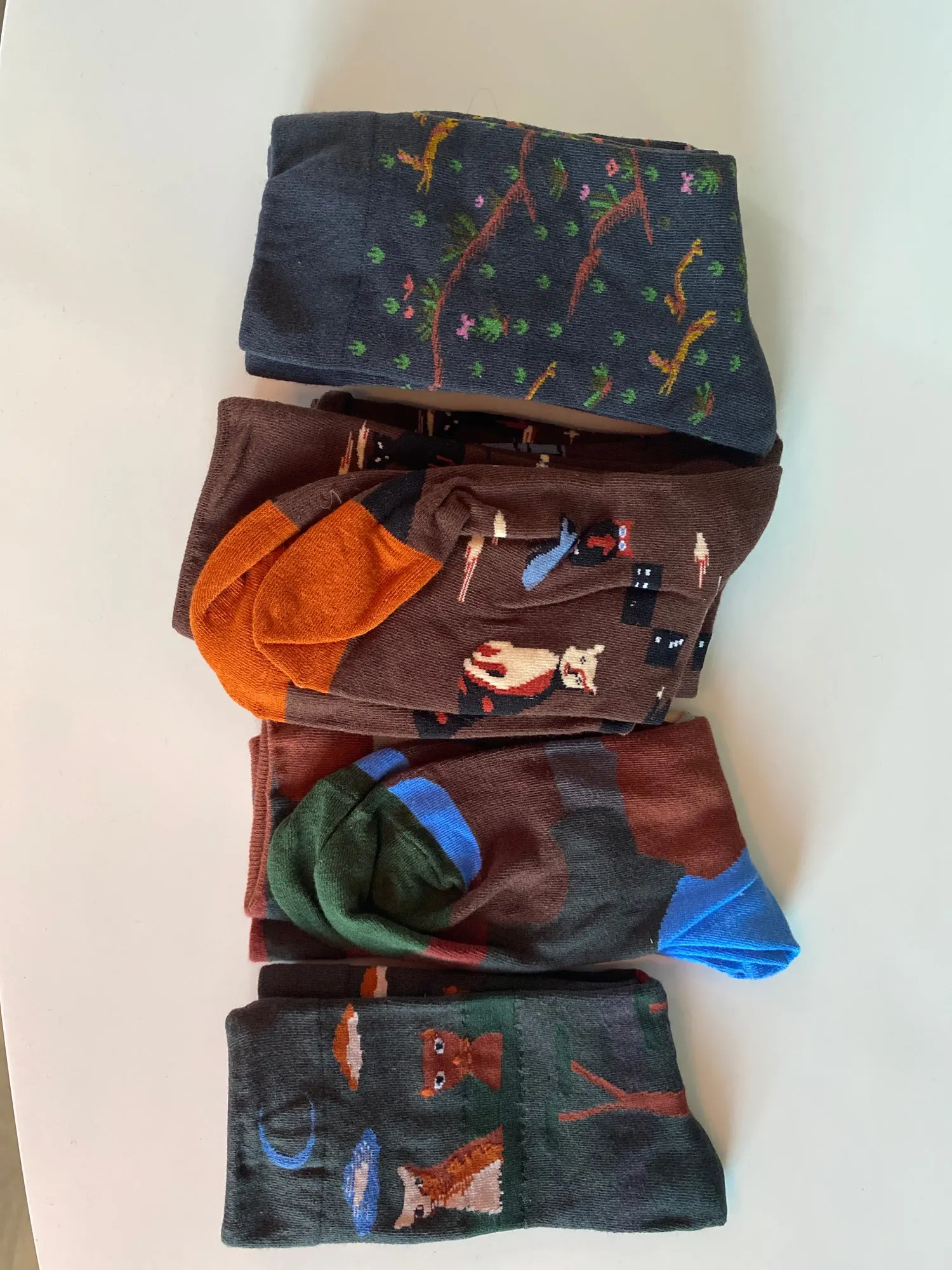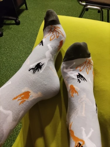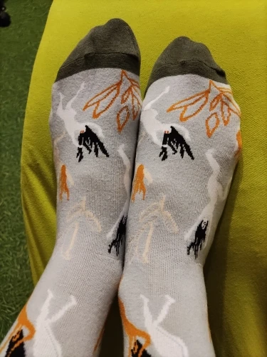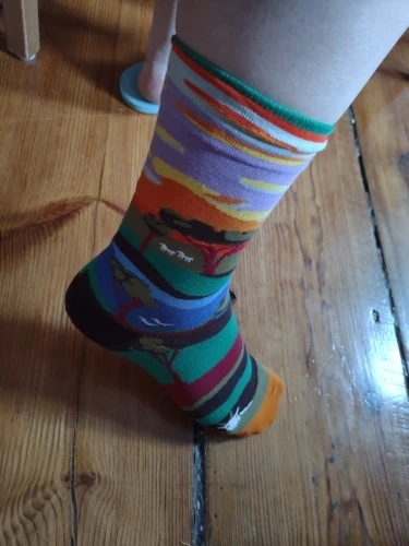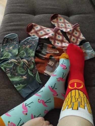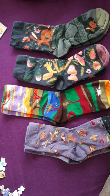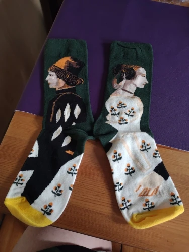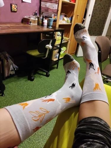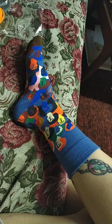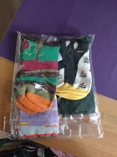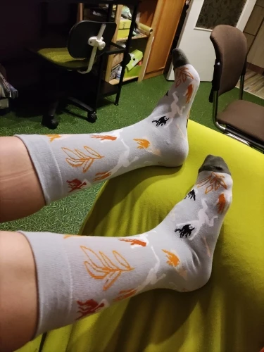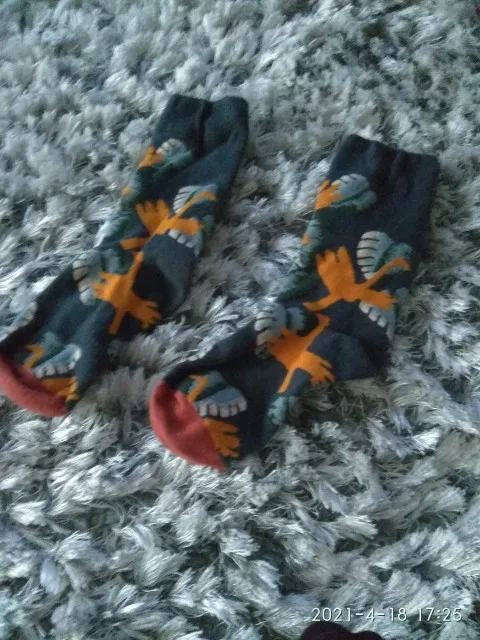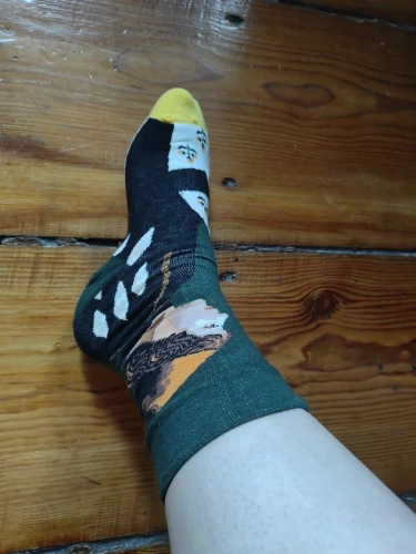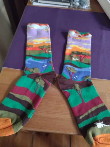 Очень доволен носками. Как описано и еще красивее. Ткань пухлая, а верхняя часть резины занимает самую толстую ткань, поэтому она усилена. Рисунки замечательные. Я обязательно куплю больше для себя и моей семьи и для теги за его оригинальность